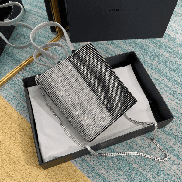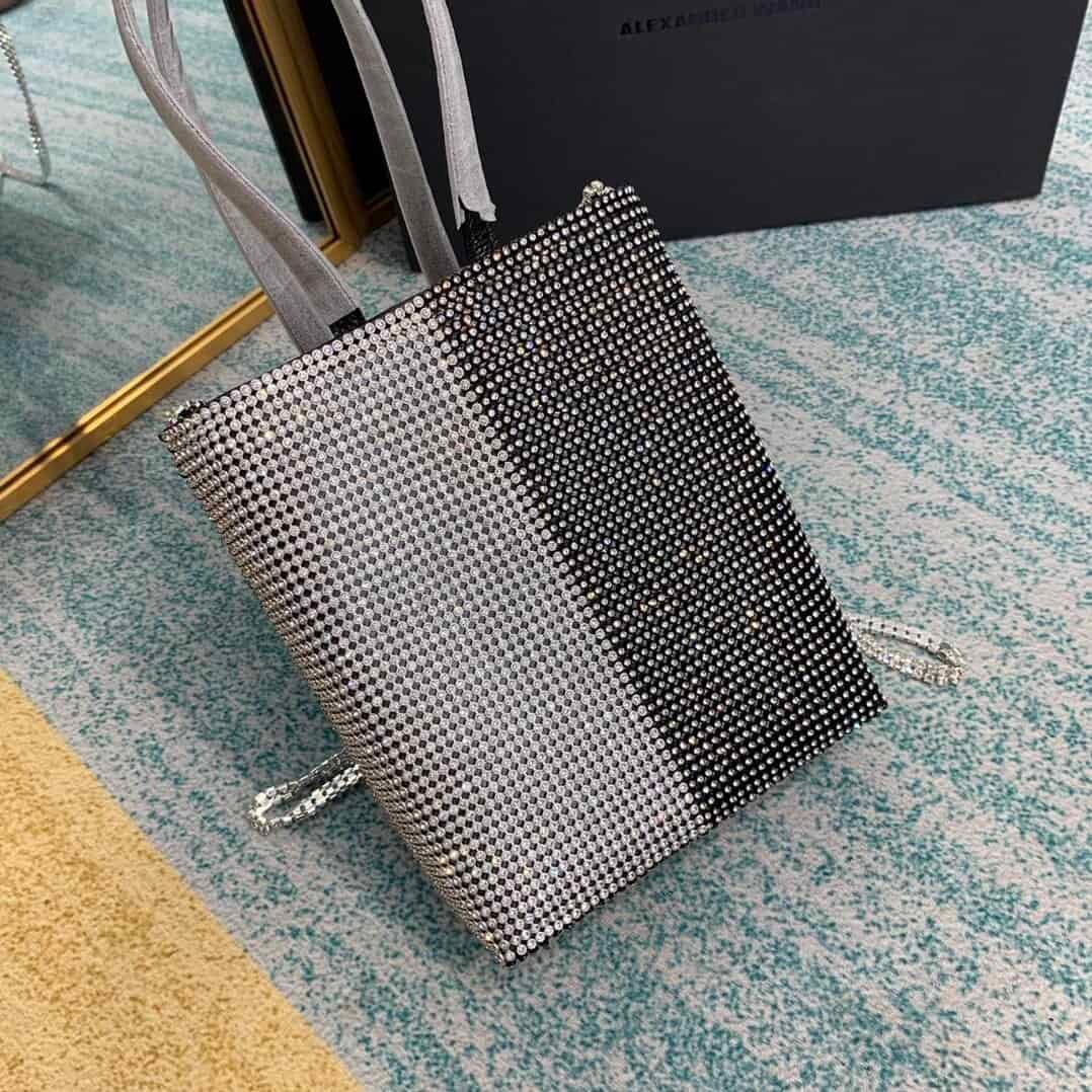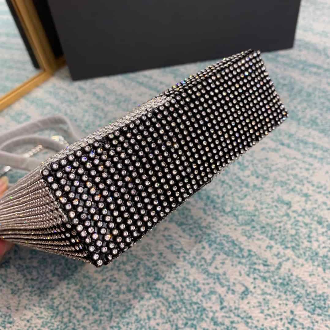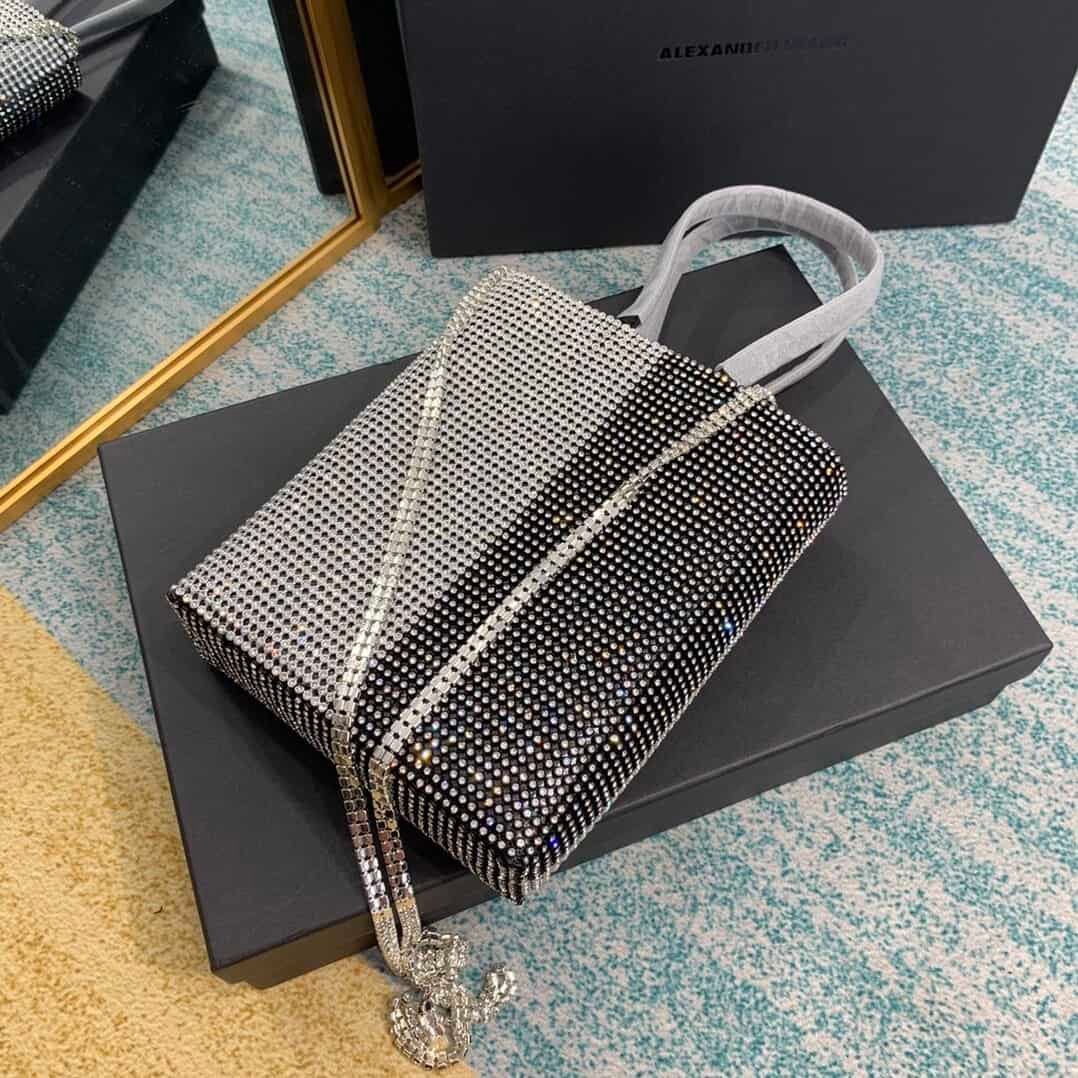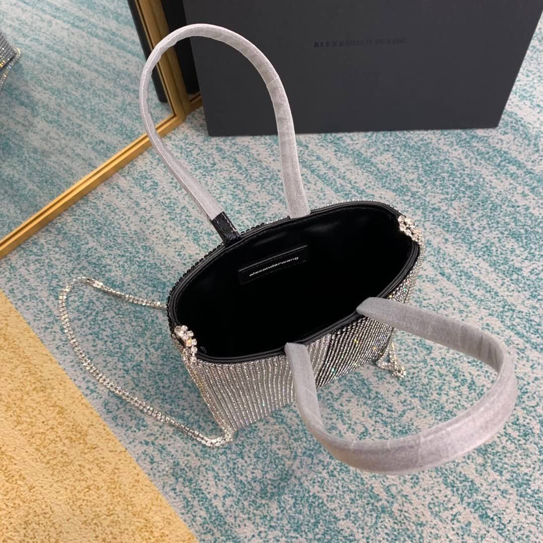 2020 Alexander King portable bucket bag single room bag, with sheepskin lining and exquisite rhinestones shining brightly. Each diamond is firmly inlaid with four claws. It is strong through technology and is not easy to drop. The textured hardware zipper is smooth, wear-resistant and durable, and the chain will not jam. Every diamond is made by net diamond, and the handle is more thoughtfully designed. The handle is made of cowhide.