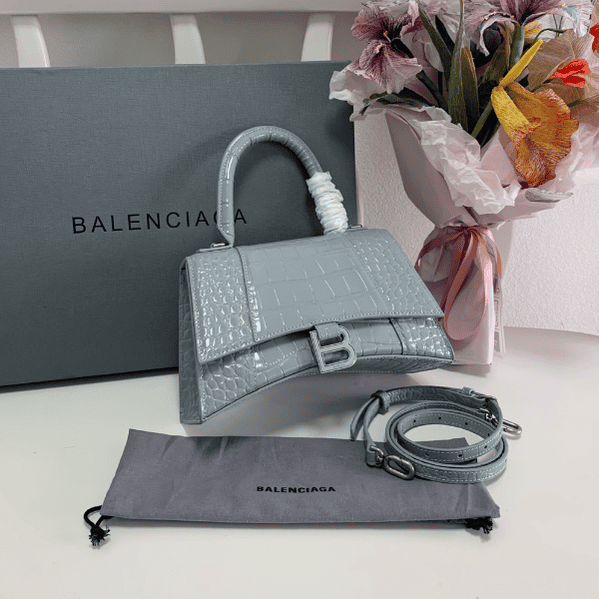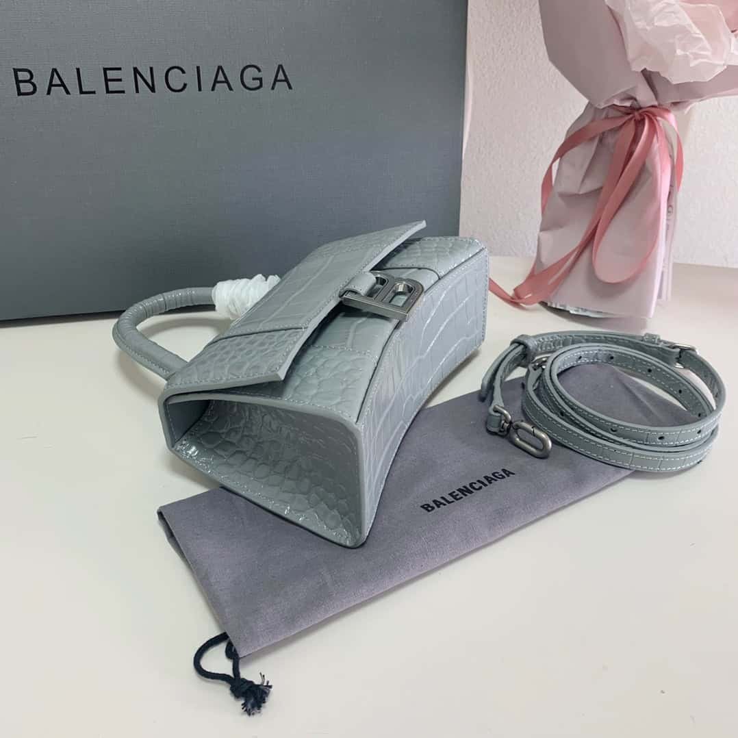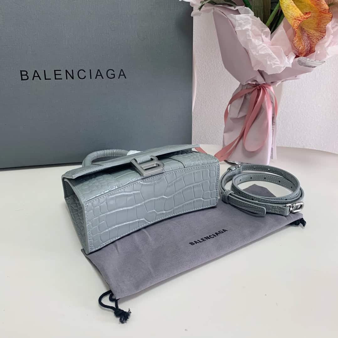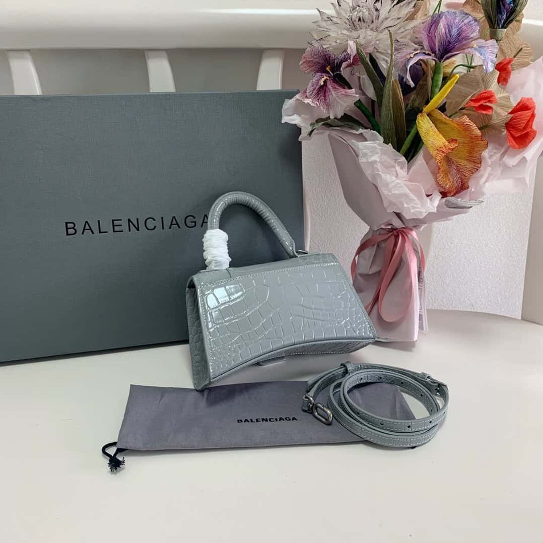 Balenciaga Hourglass Bag Retro Gray Crocodile Pattern Top Upgraded Version Spot real shot, imported calfskin embossed crocodile inside and outside full leather, instant delivery, trendy