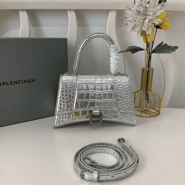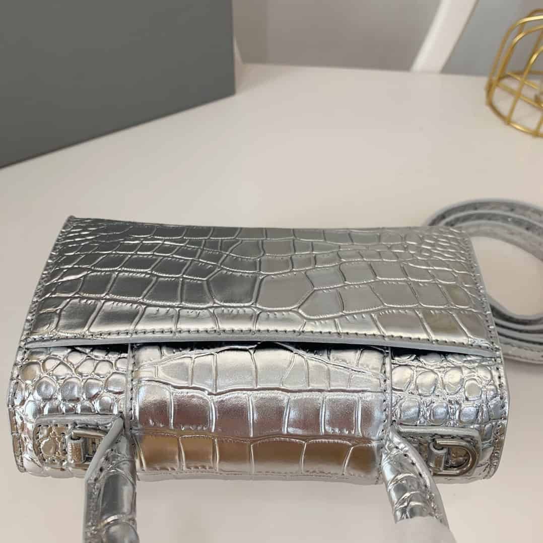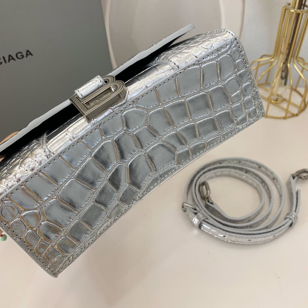 Balenciaga’s seasonal heavyweight Hourglass hourglass bag, the most unique antique silver crocodile pattern/silver buckle is super popular Gold size S: 23x10x15cm, original imported calfskin embossed crocodile top quality, original packaging