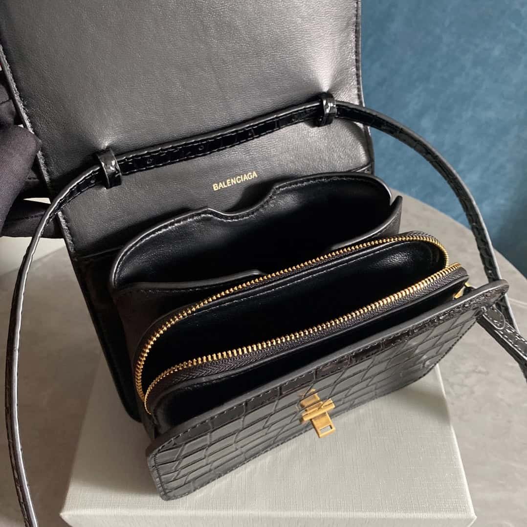 Parisian BALEN’s most popular B Bag of the season, square box shape with crocodile pattern, invincible fashion, four compartments, oversized sheepskin lining, exclusive private mold matching lock hardware, unique wrist design, can be carried in various.