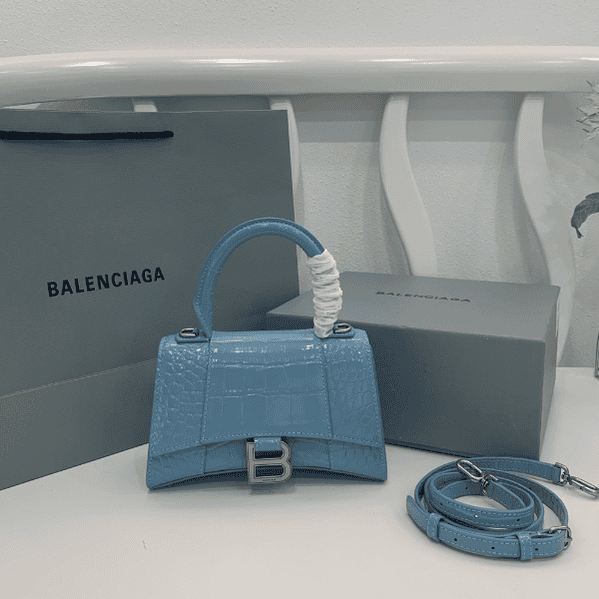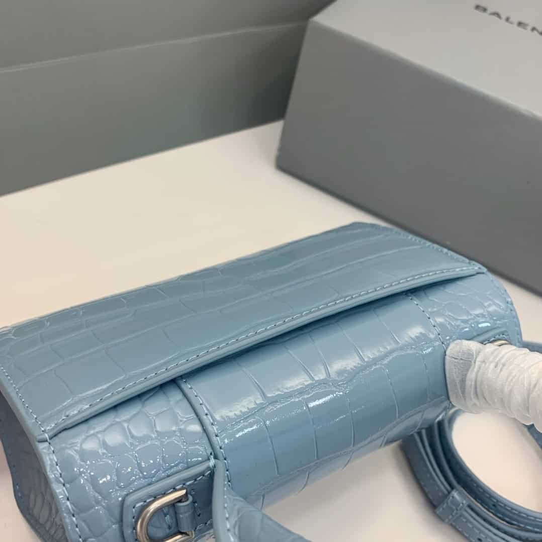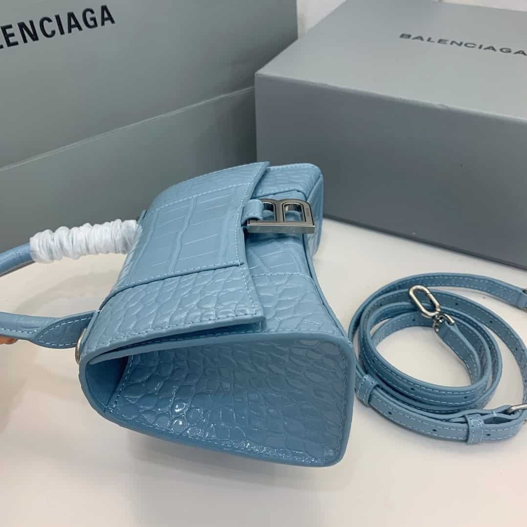 Balenciaga’s blockbuster Hourglass hourglass bag haze blue crocodile pattern/silver buckle hot sale is invincible and trendy, super age-reducing Xs small size: 19x13x8cm, original imported calfskin embossed crocodile top quality, original packaging