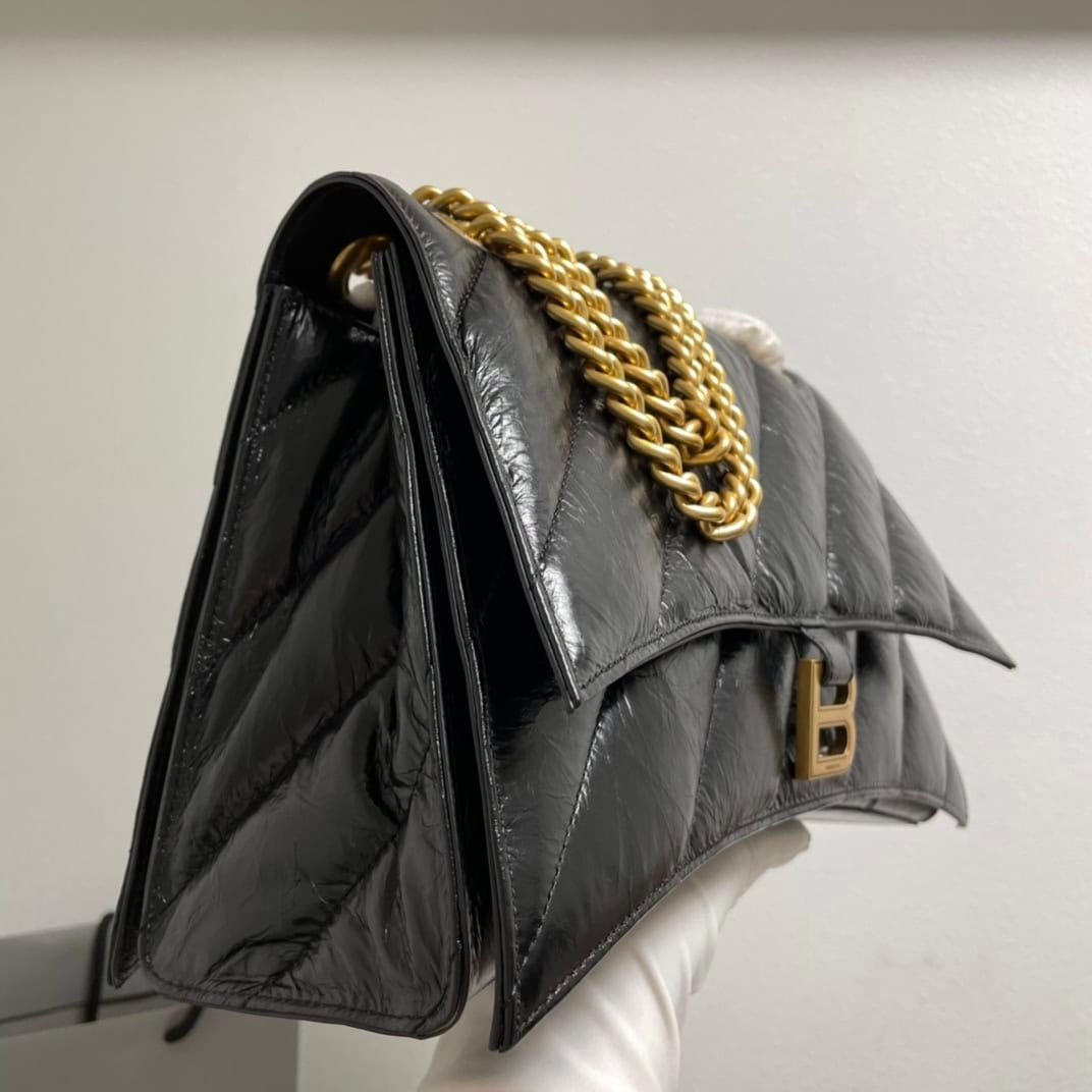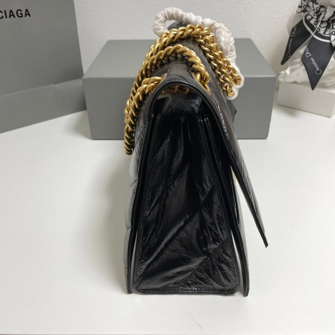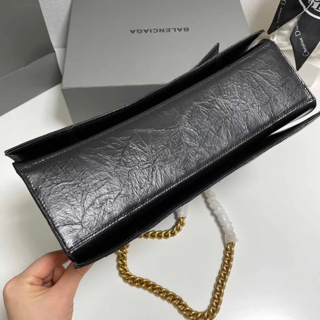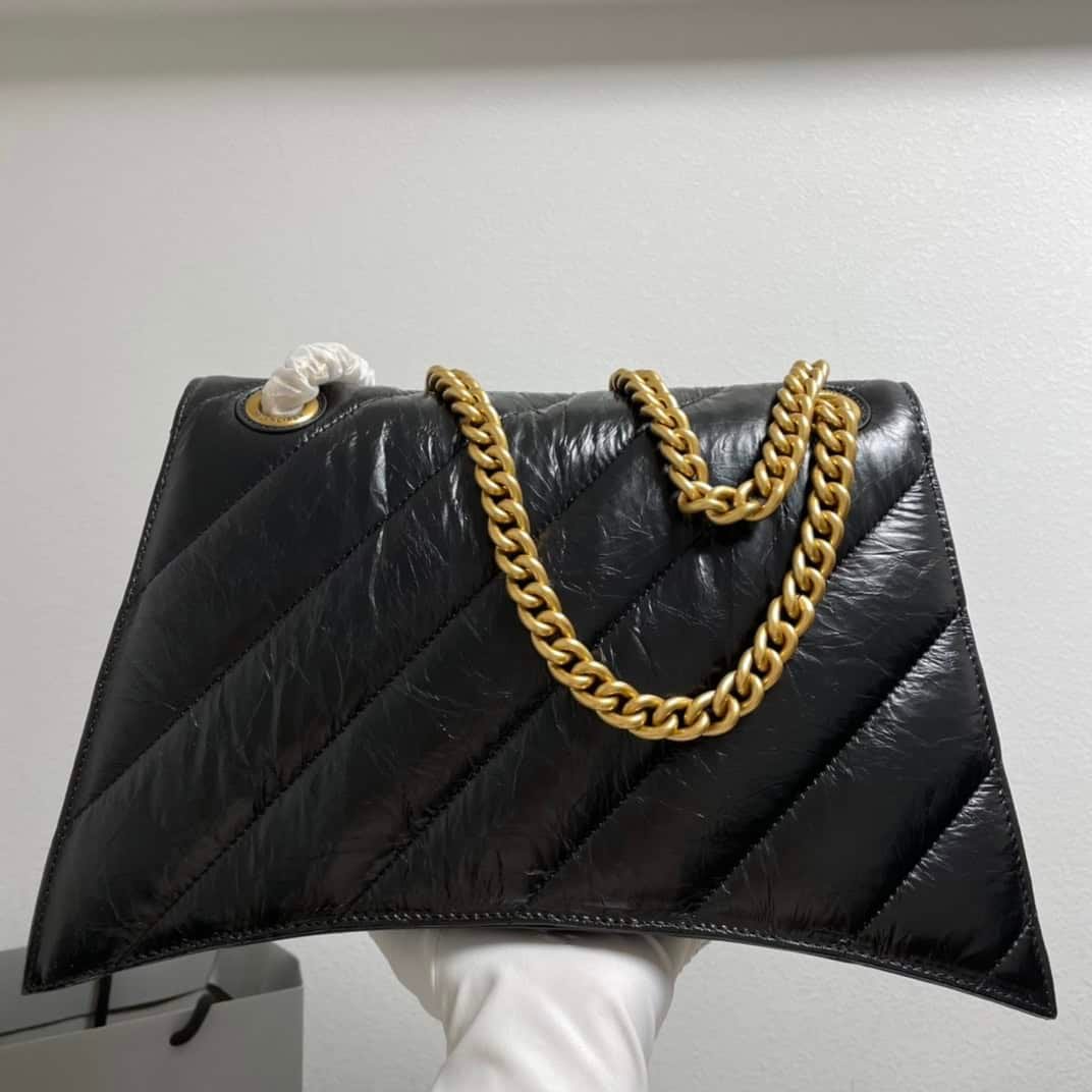 Balenciaga’s new cool black and gold Crush chain bag medium size 31cm Original imported calfskin pleats with handmade embroidery thread Actual photos of customer-ordered inspections are now on sale