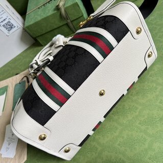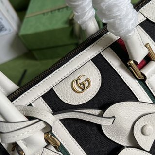 Large canvas handbag, the brand new “Exquisite Gucci” series handbags renew the style of travel bags. Black original GG canvas, striped webbing, double G accessories, and the brand’s classic logo jointly interpret the unique style. Black classic GG canvas, white leather trim, gold-tone hardware, red and green Web double G, detachable ID tag, detachable leather keychain, metal protective feet, side zip closure, interior: 2 zipped pockets, carry handle Hand (8 cm high) detachable shoulder strap (56 cm high) zip closure.