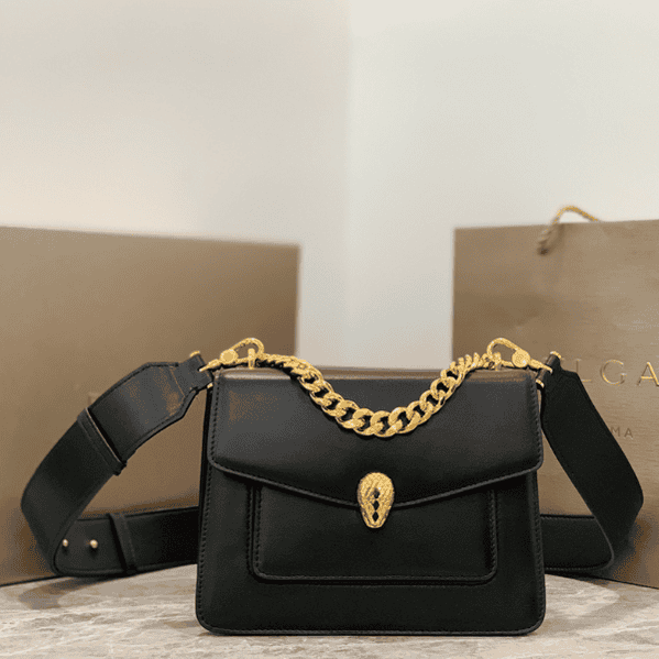 Bulgari Maxi Chain Small Lambskin Crossbody Bag – Black 41914 | Sandra Bags