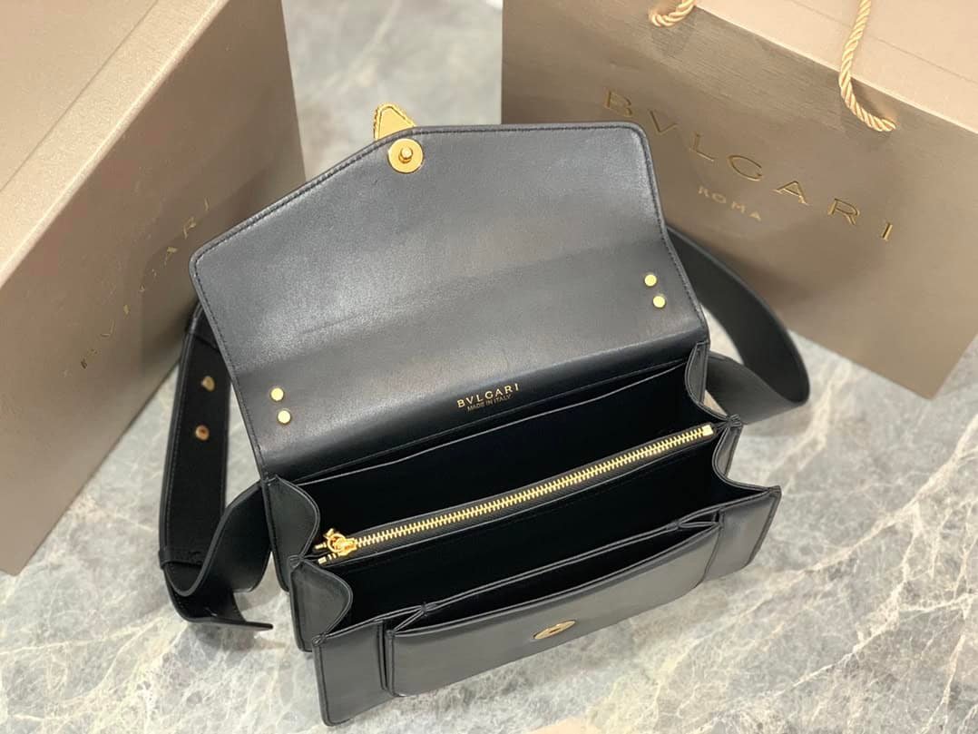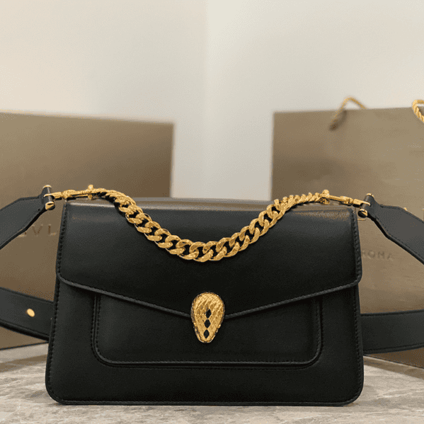 Bulgari Maxi Chain Small Lambskin Crossbody Bag – Black 11222 | Sandra Bags