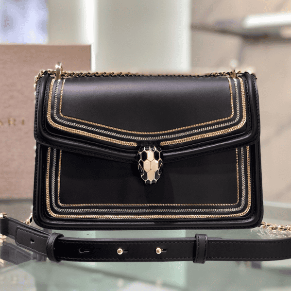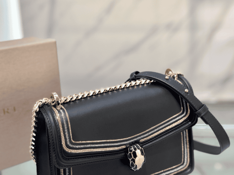 The new “Serpenti Diamond Blast chain bag” at Bvlgari counters is the first to be launched💗💗 Made of pink calfskin with three chain decoration. Light gold-plated brass classic snake head buckle, decorated with shiny pink Colored enamel with heart-shaped decoration and black onyx eyes. Unique “Serpenti in Love”