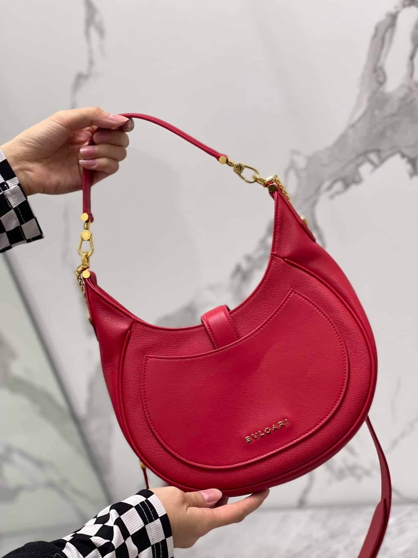 Featuring a single compartment, adjustable chain and leather shoulder strap and removable leather handle, it can be worn cross-body or as a classic shoulder bag. Practical top zip with an internal pocket, an external pocket on the back and BVLGARI metal logo.