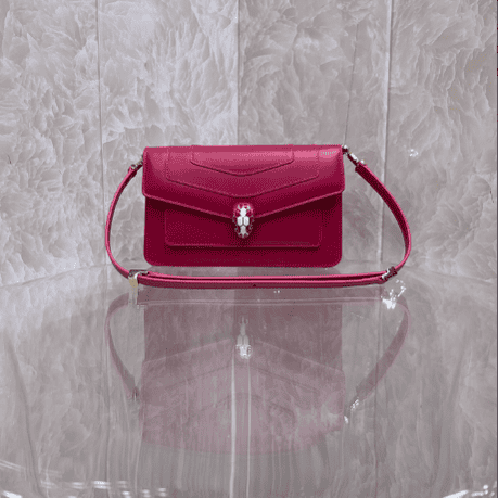 SERPENTI FOREVER EAST-WEST series small shoulder bag special edition is designed to pay tribute to the 520 festival and the power of love. It reinterprets timeless classics in a fashionable way and is made of flamingo quartz pink calfskin. The piece is paired with a practical leather shoulder strap and decorated with a classic snake head magnetic buckle. Its charming scales and design draw inspiration from the SERPENTI series of high-end jewelry in the 1960s. It is versatile and suitable for daily wear. It has a single compartment, a front pocket, a back spliced ​​pocket, an interior quilted pocket, three card slots, a customizable vanity mirror, and a BULGARI metal logo on the back. Sold exclusively online.