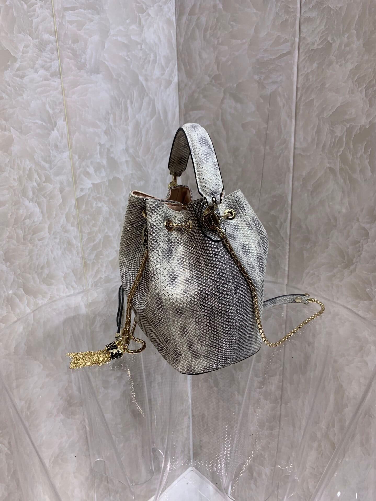 Bulgari Snake Skin Bucket Handbag – Gray 70801 | Sandra Bags