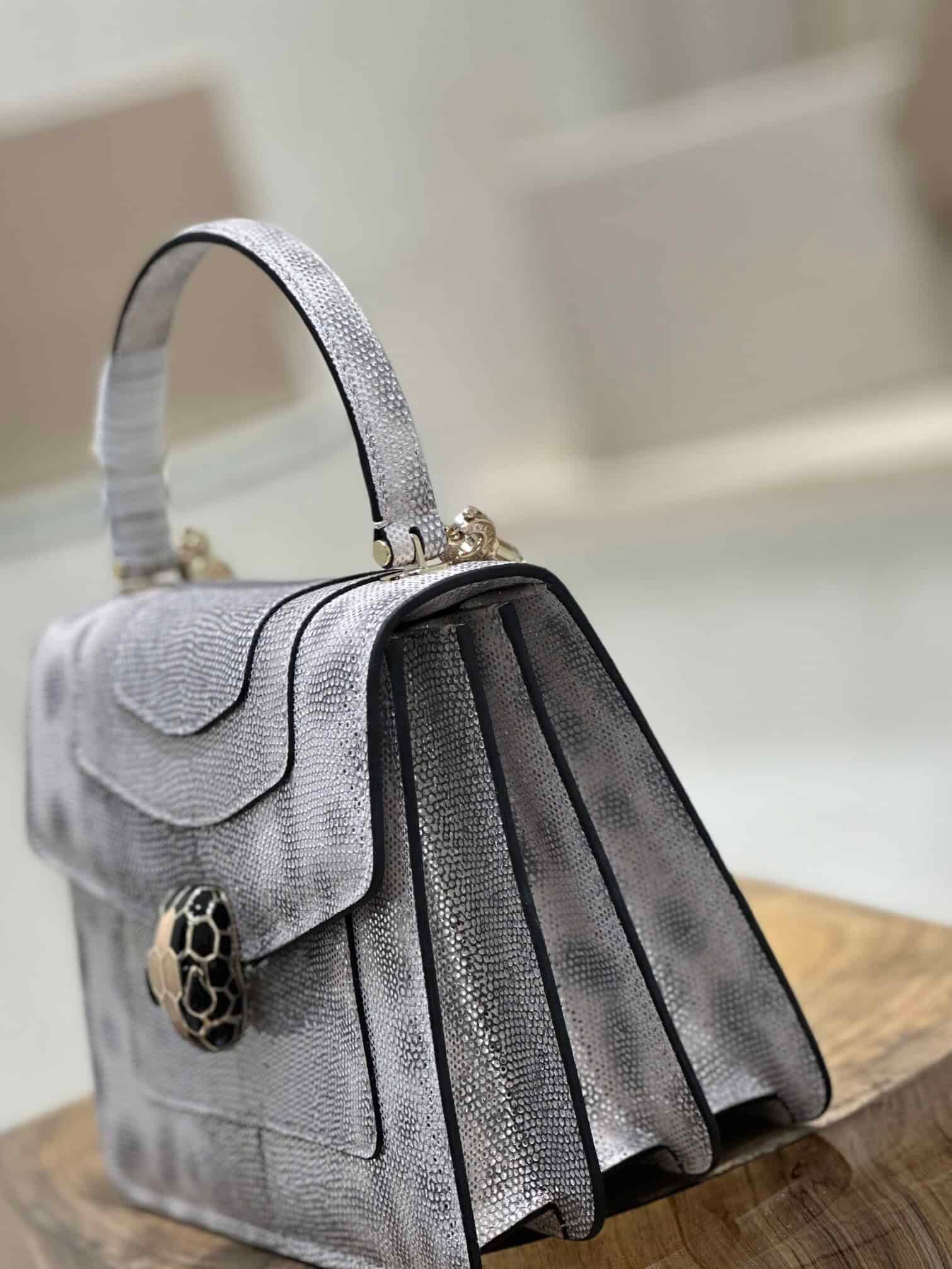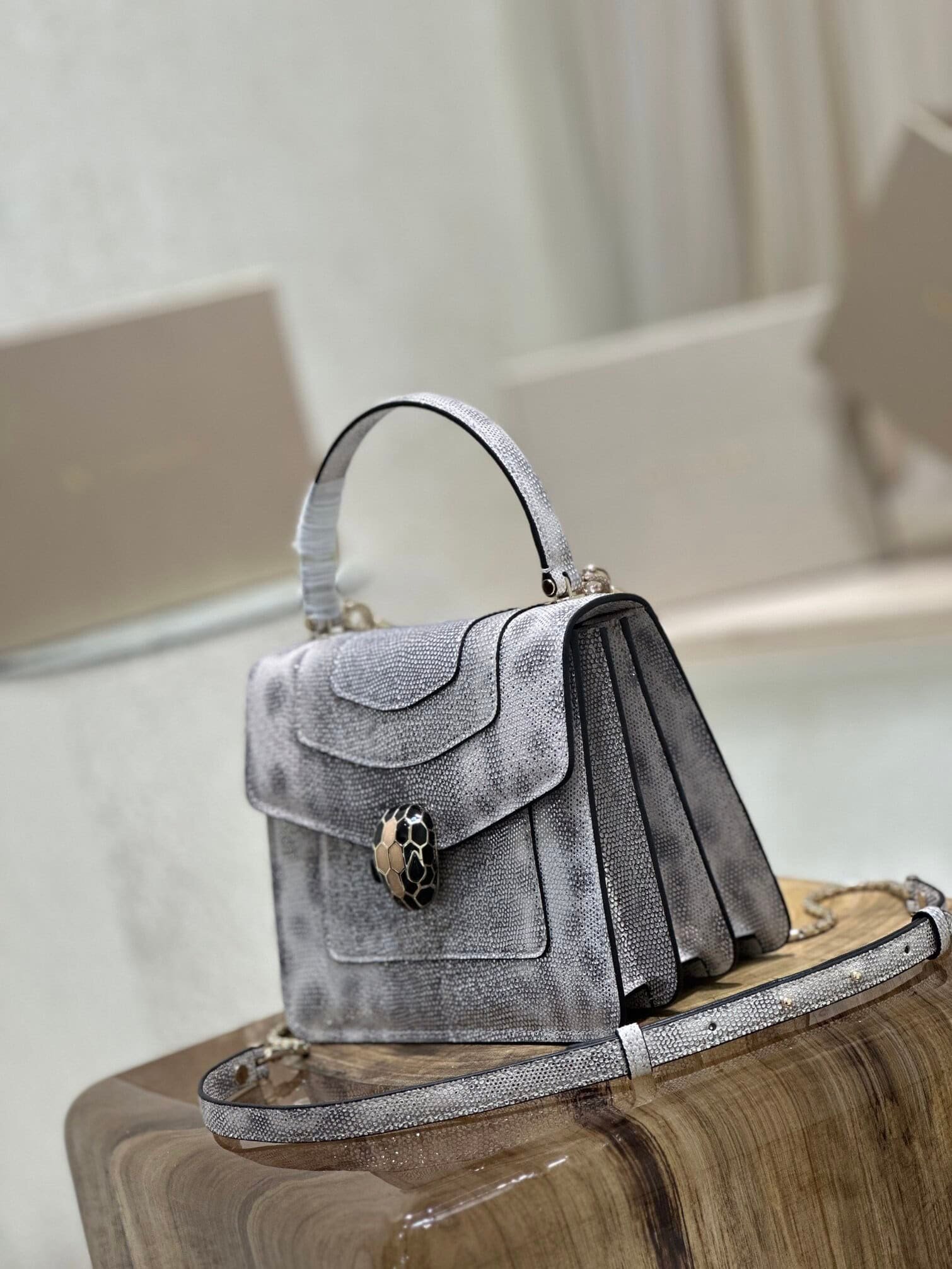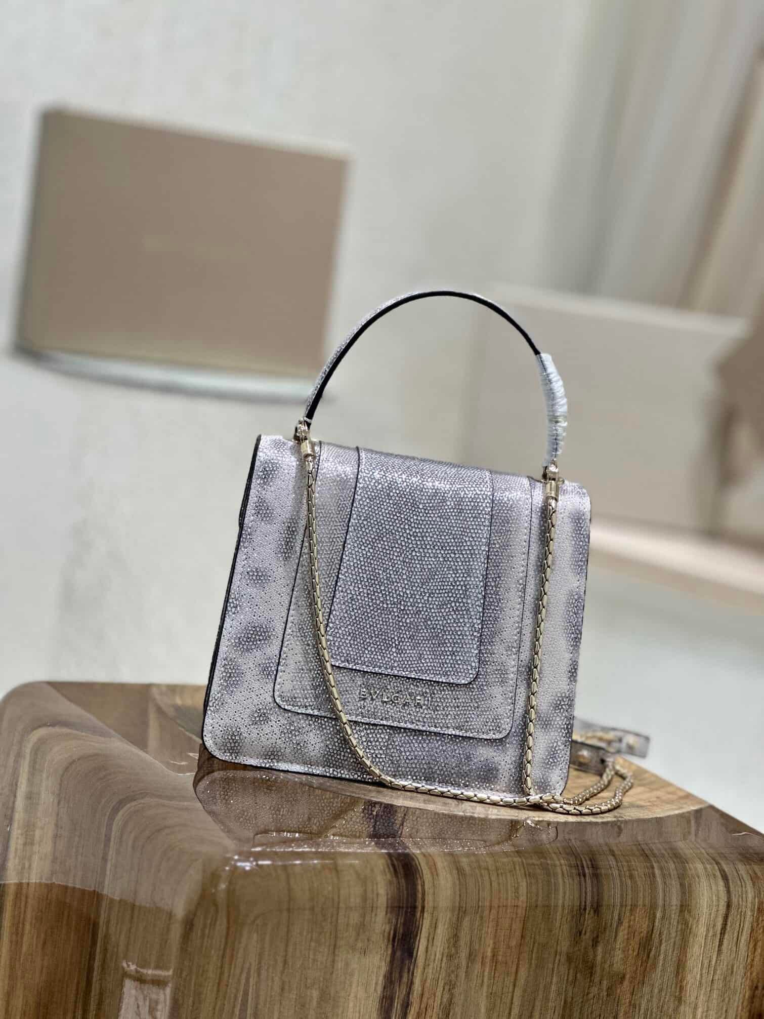 Bvlgari limited edition – water snake skin snake head bag first launched on the market. The texture of this leather is very good. The enamel black snake head is made of light pink lambskin on the inside. It is so beautiful when paired with light pink. The real thing is still so shiny. ~Like little stars in the sky~[Color][Color]