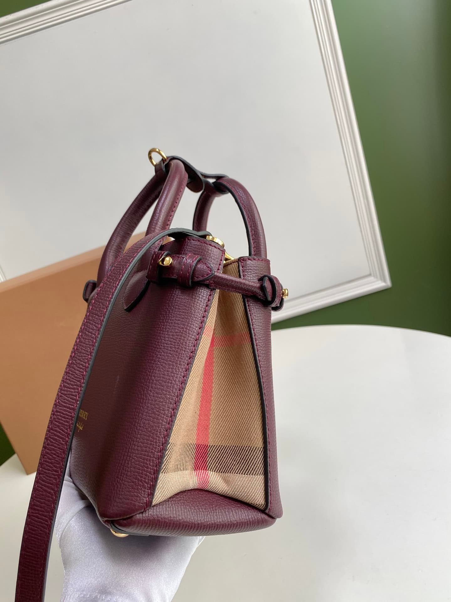 B’s original iconic “The Banner Banner handbag”, selected British worsted classic House plaid cotton cut, with luxurious leather trim