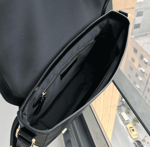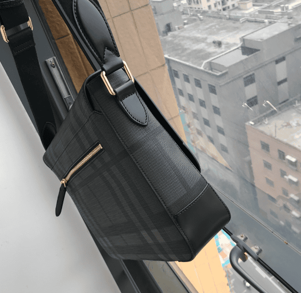 B’s pure original men’s messenger bag is made of mellow London check. A shoulder bag with a straight version, designed with PVC material and cowhide exclusive for B family, equipped with a magnet closure and a rear zipper outer pocket, and two concealed buttons at the closure, which can easily store scattered items, low-key atmosphere, successful A must have for men.