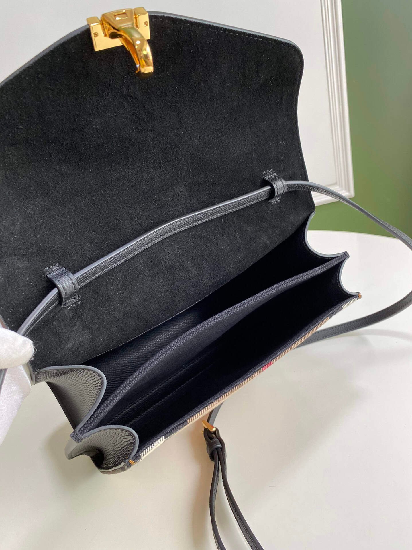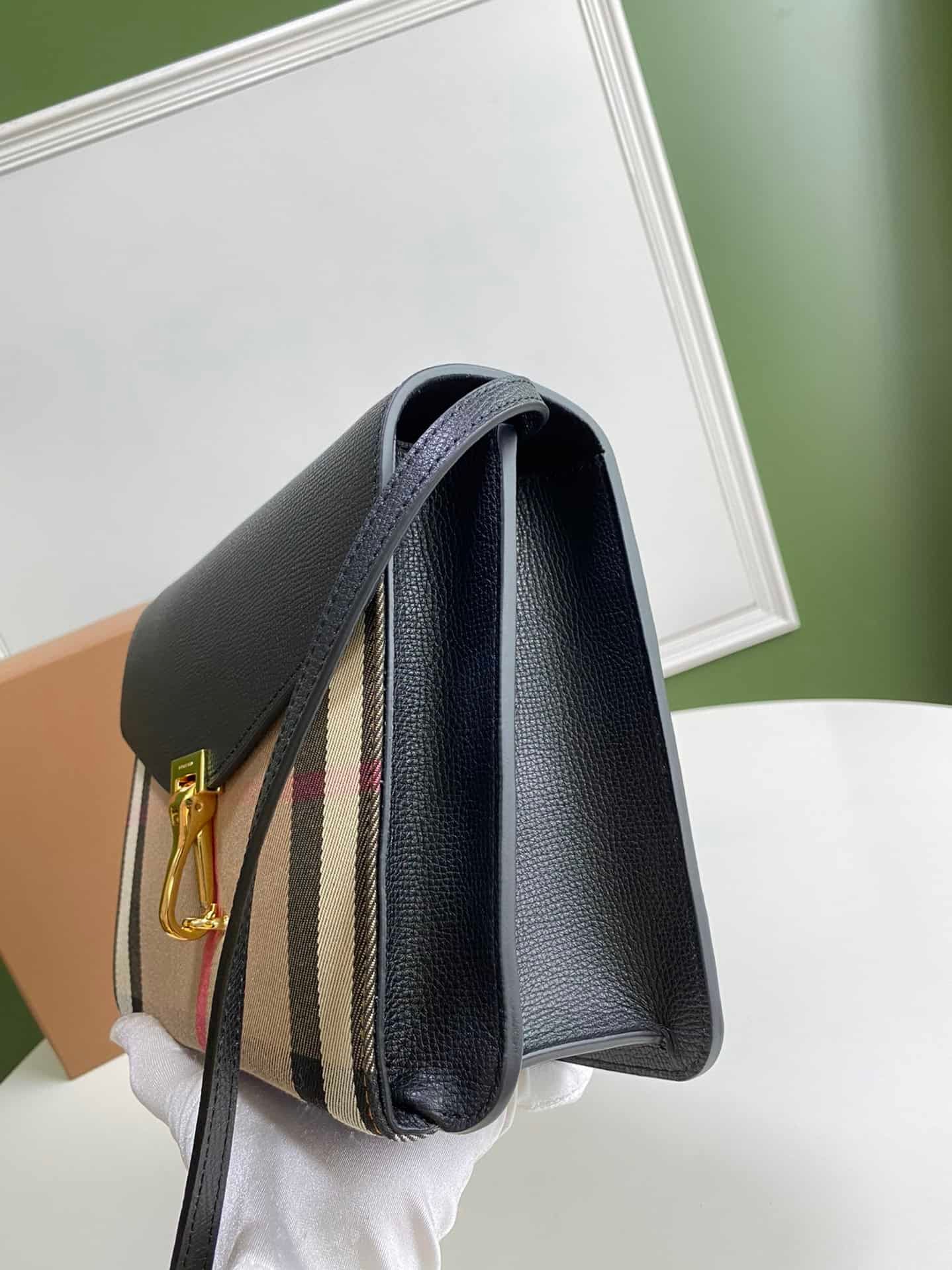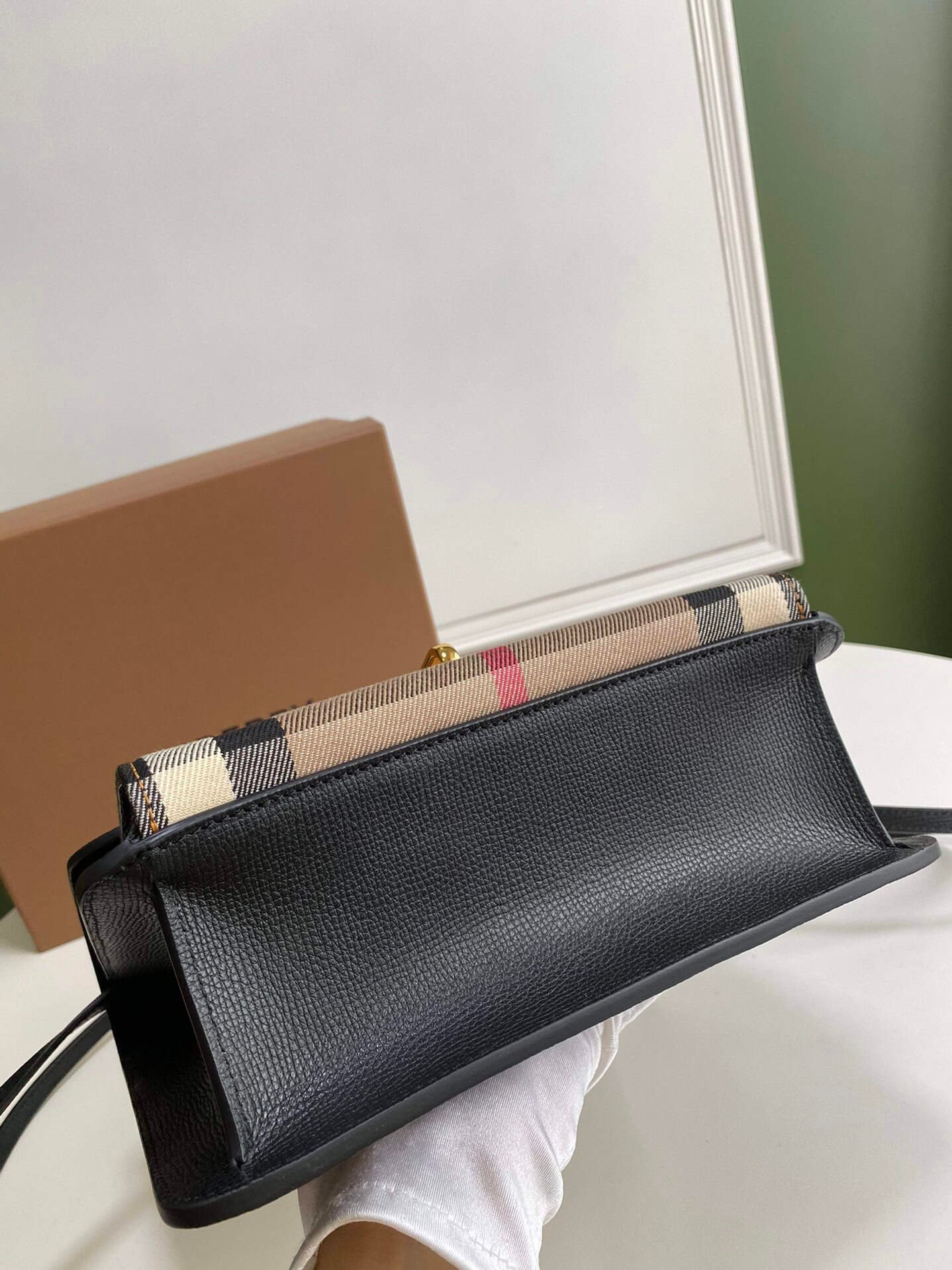 B’s pure original grain leather and house check cross-body bag version Exquisite upright backpack design with open inner compartment and outer zipper pocket for easy storage of personal belongings.