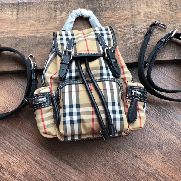 Burberry’s mini shoulder cross-body military backpack, refurbished with retro check pattern, selected cotton material and leather trim. Based on the brand’s collection of military-style bags, it comes with a strap for cross-body waterproof jute and 100% calfskin.