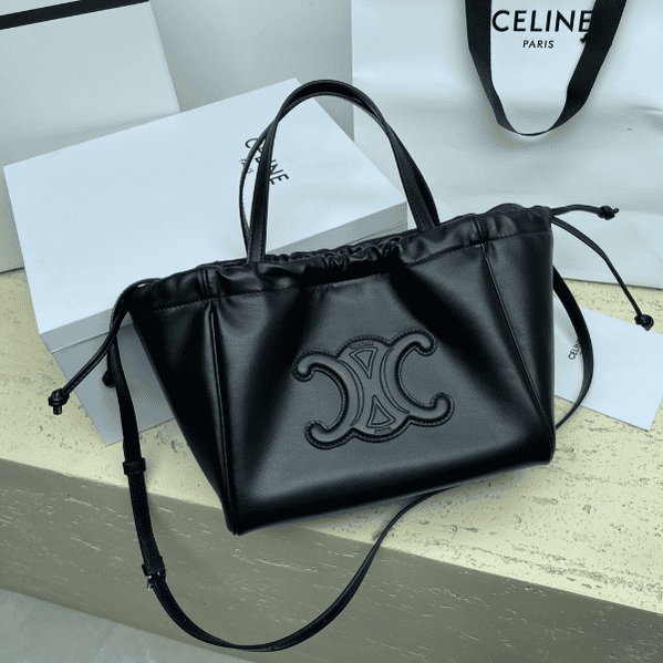 Celine Cabas Triomphe Small Drawstring Bag – Black 25417 | Sandra Bags