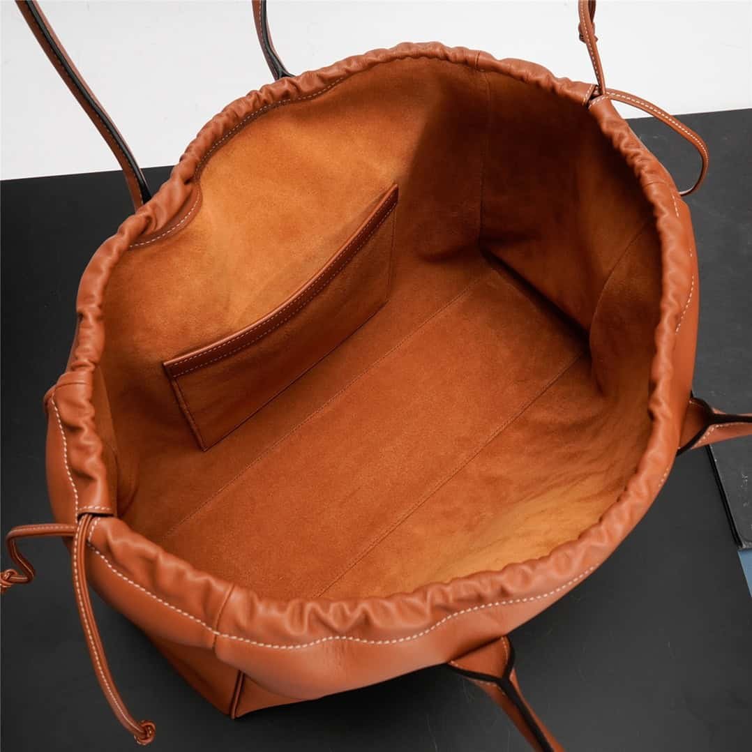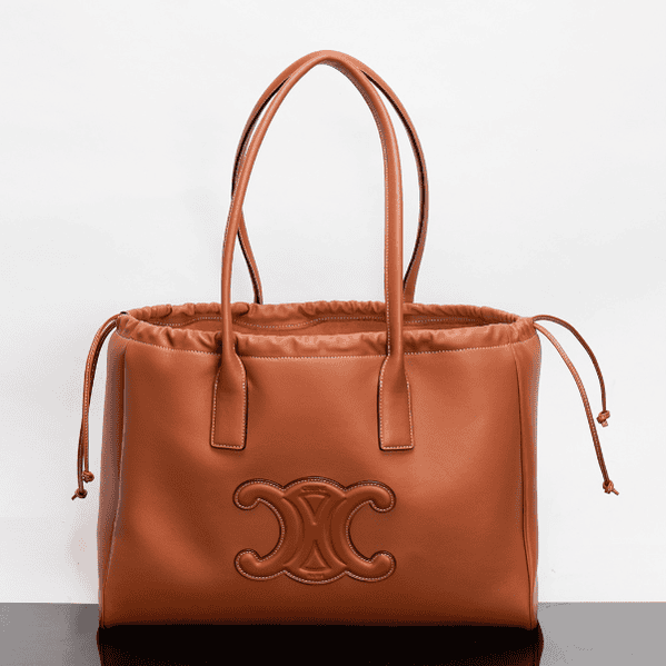 CABAS TRIOMPHE Smooth Cow Leather Tote Drawstring Bag