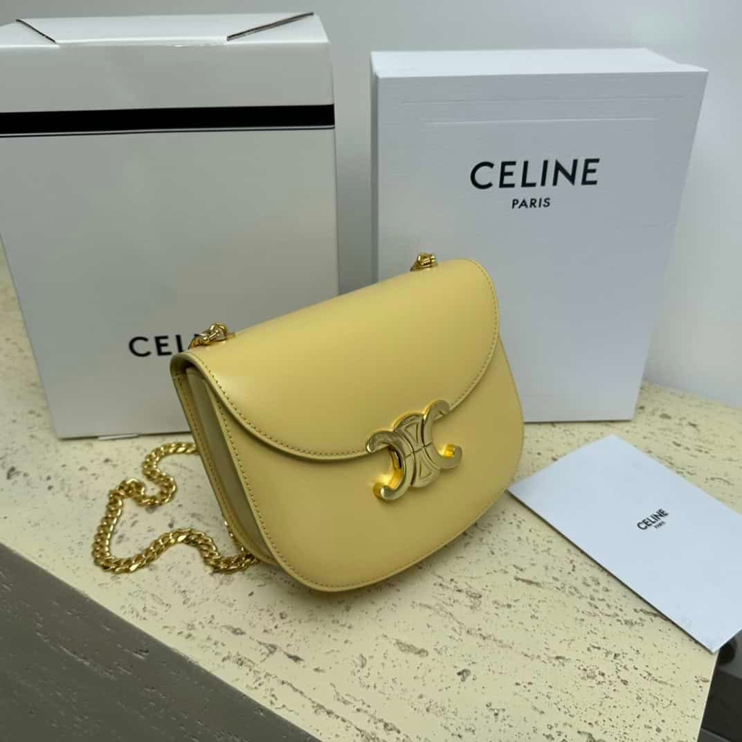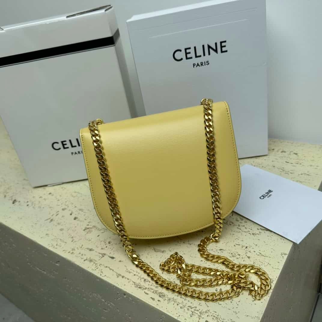 Celine Teen Besace Triomphe Glossy Cow Leather Chain Handbag – Cream 42185 | Sandra Bags