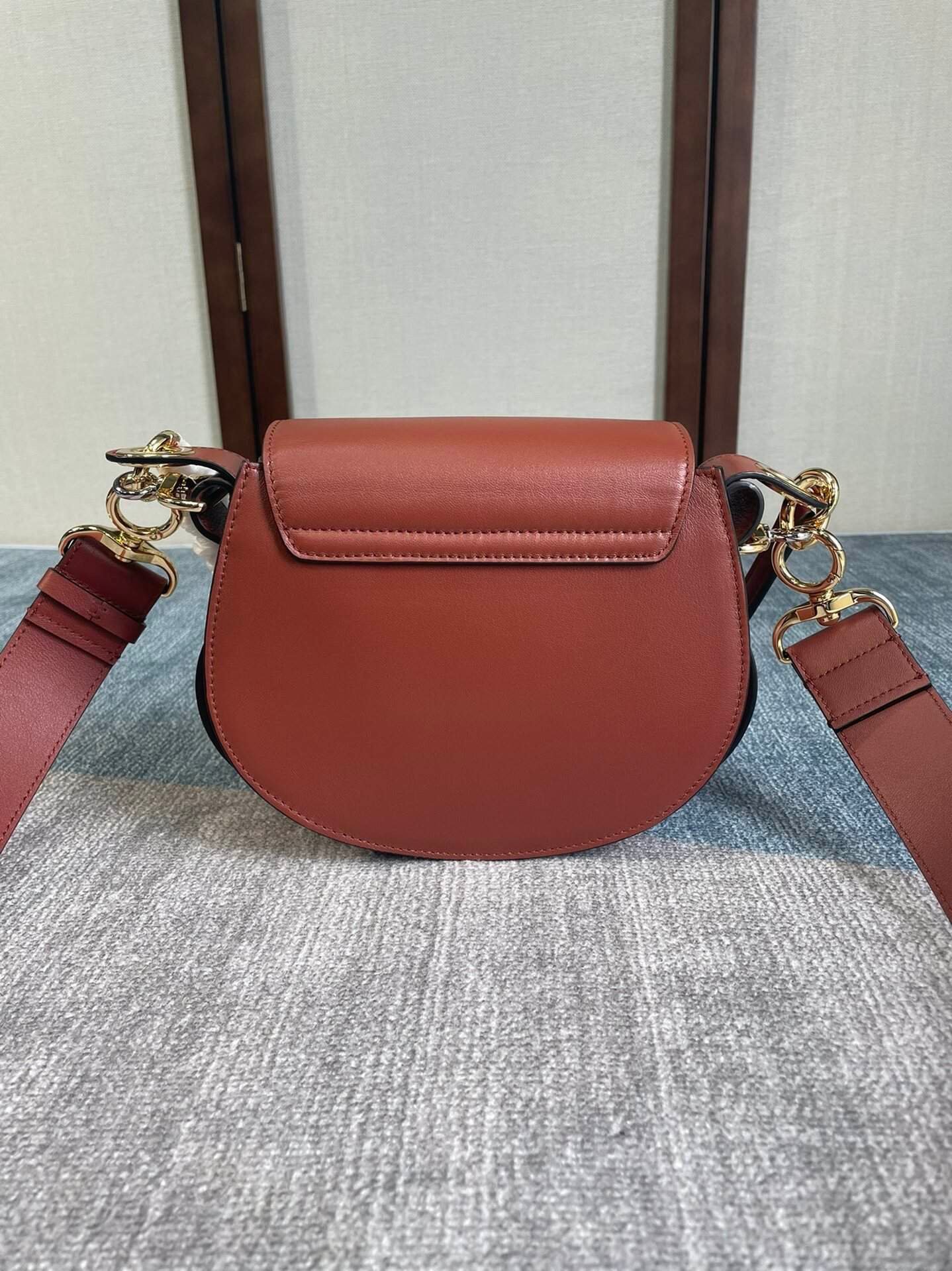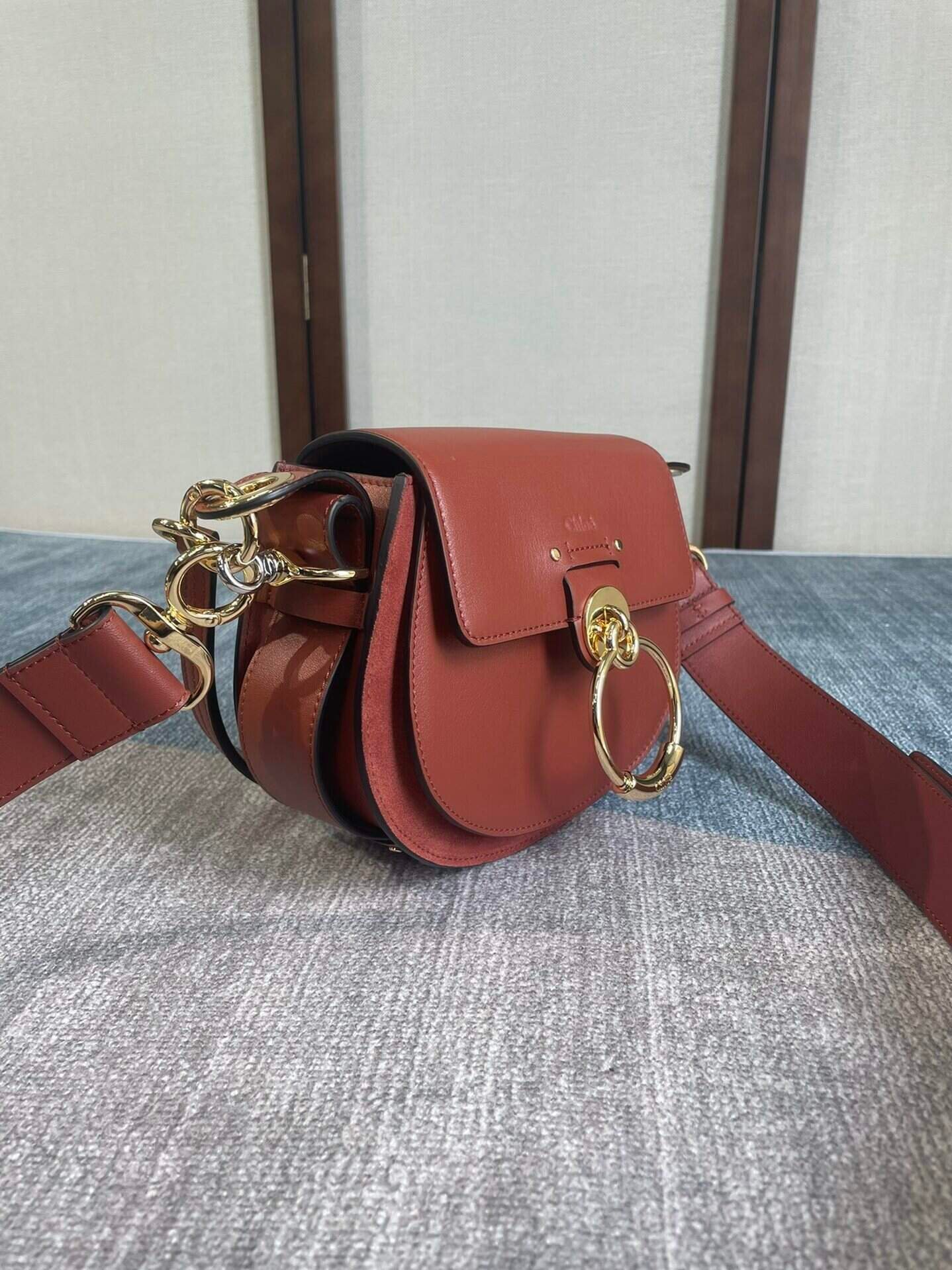 Chlo Tess new autumn and winter saddle bag is made of elegant glossy calfskin and suede calfskin. It presents a delicate round shape that highlights the essence of the brand. The eye-catching front loop shows Chlo’s “O” logo with a front flap. Magnetic lock closure mixed with golden brass and silver finish hardware 1 internal front pocket 1 internal flat pocket Cotton lining Supplied with dust bag 1 short removable leather strap for shoulder and hand carry 1 adjustable and removable The long leather strap is available for long shoulder and cross-body hand carry, long shoulder and cross-body