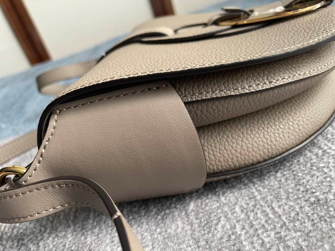 New Chloe DARRYL Elegant Light Gray Saddle Bag Grained Calfskin Spliced Smooth Calfskin Belt Bag – Magnetic closure – 1 large inner compartment – Suitable for all mobile phones – Adjustable leather strap – Gold accessories Unlined size: 19/20 /7