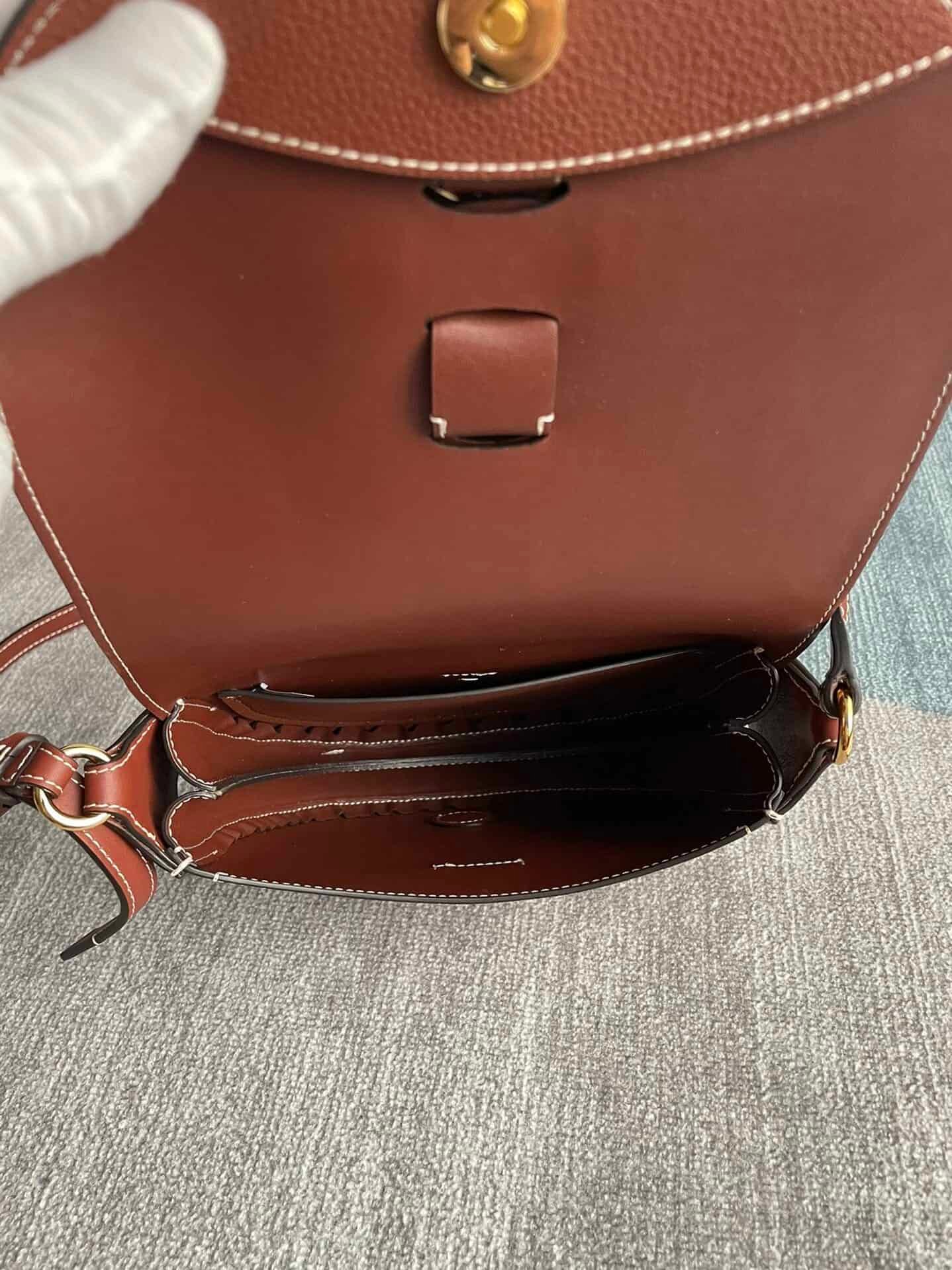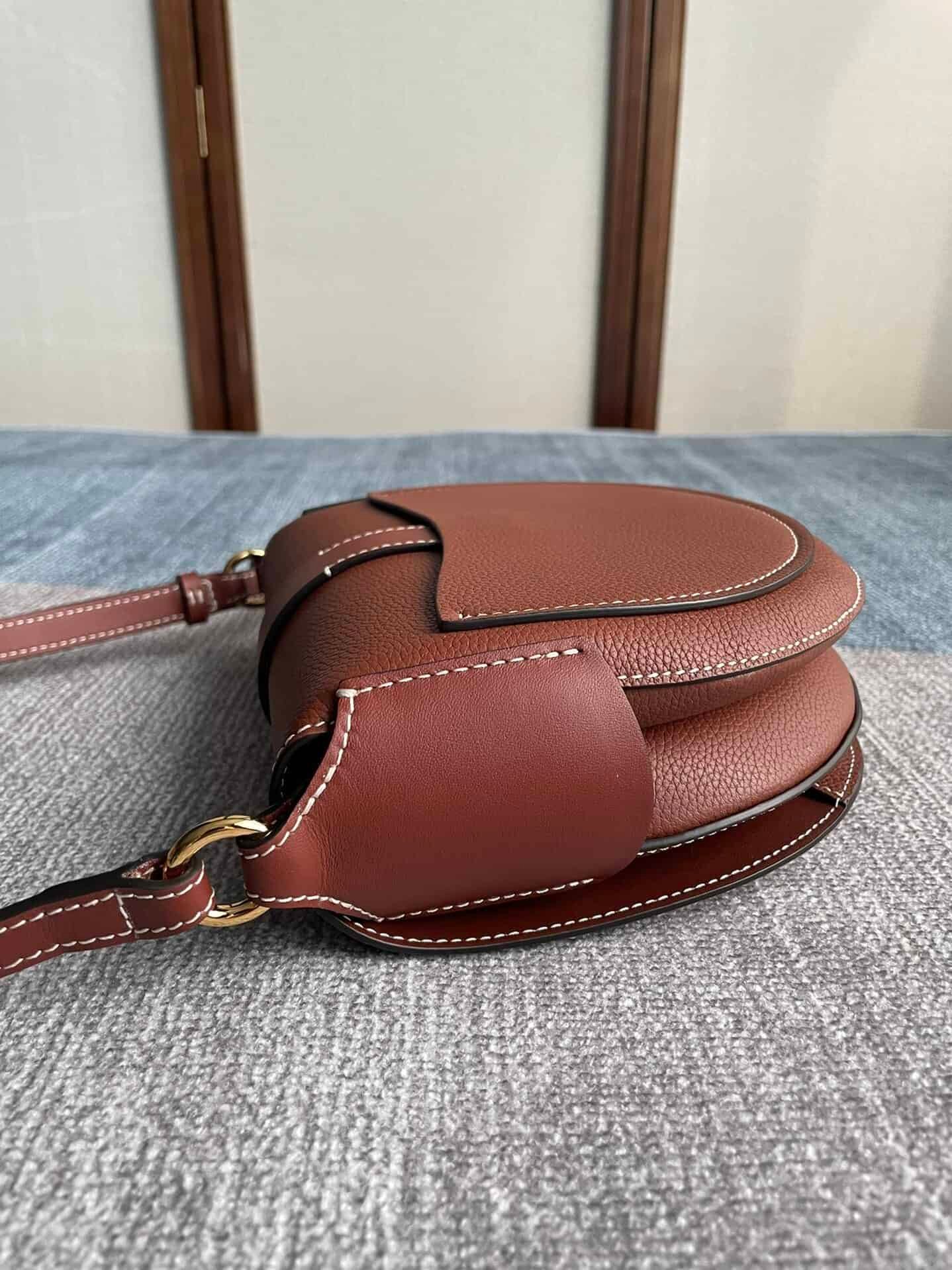 New Chloe DARRYL Mocha Warm Brown Saddle Bag Grained Calf Leather Stitched Smooth Calf Leather Belt Bag – Magnetic closure – 1 large inner compartment – Suitable for all mobile phones – Adjustable leather strap – Gold accessories Unlined size: 19/20 /7