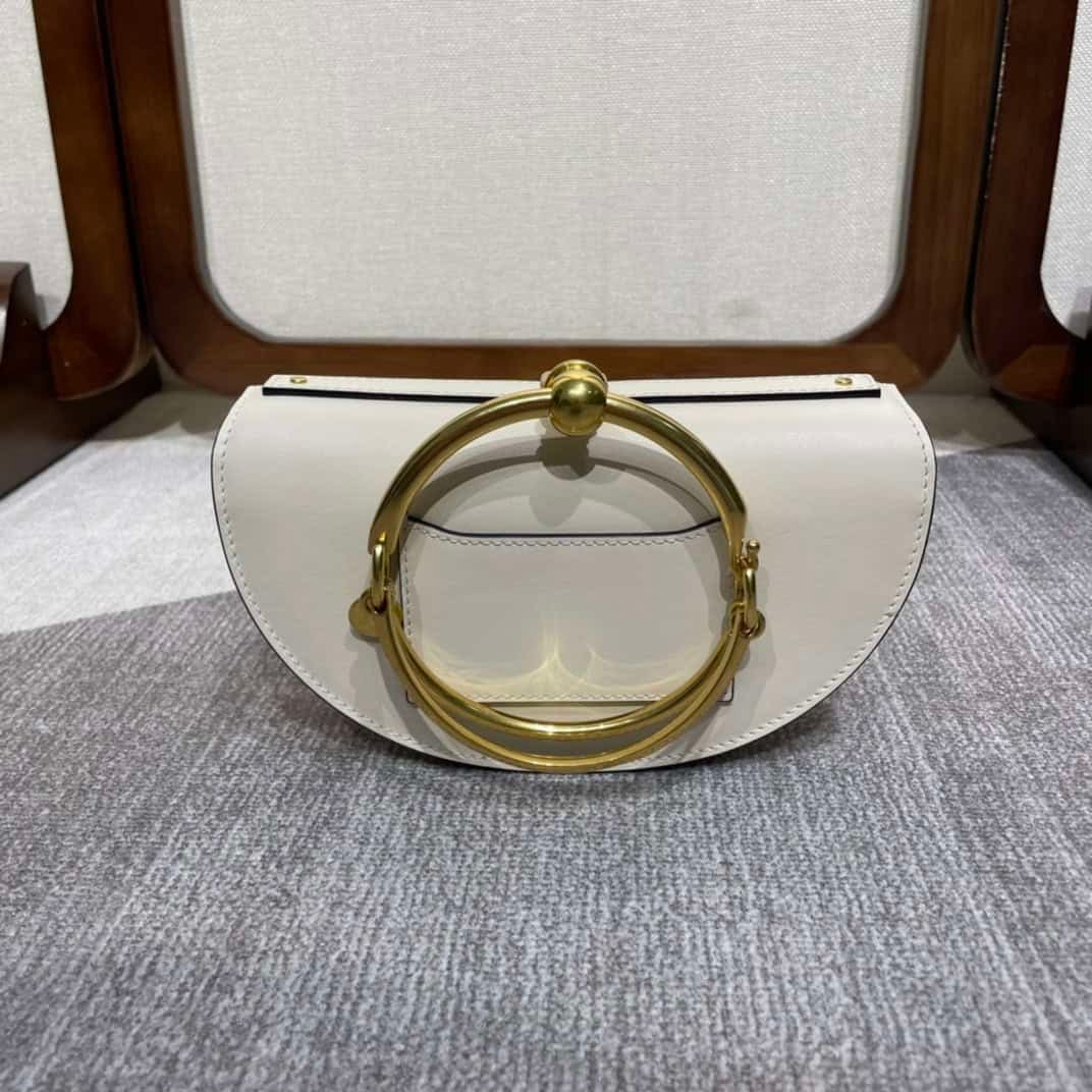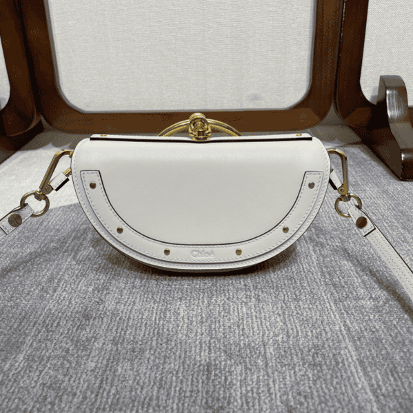 Chloe Nile Series🌛20cm crescent bag☠️Spring and summer Paris Fashion Week catwalk style🔥As a bag that is suitable for both day and night, it cleverly combines neutrality and femininity💫It has the brand’s classic 🐎horseshoe shape lines➕retro large ring design 🎋It is an important element that makes the entire design of the handbag full of 💎high-end jewelry and retro feel. 💃The exquisite retro bracelet hangs on the front of the handbag and can also be used as a handle to give the bag a fashionable and instant look💫