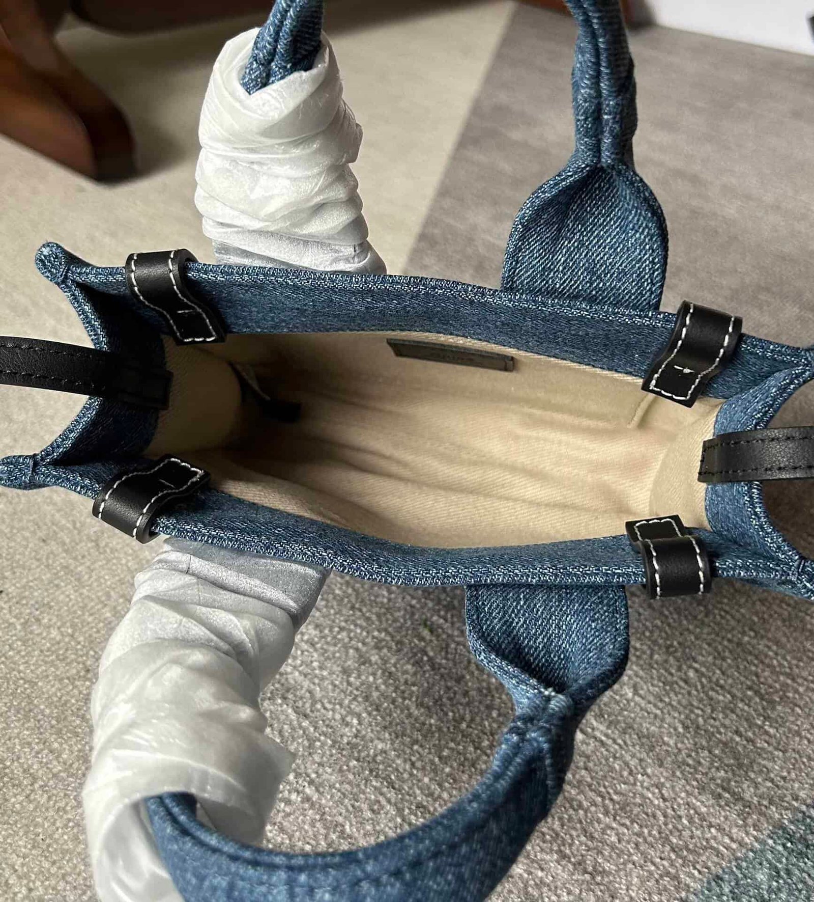 Just enough capacity makes it a perfect daily bag, replaced with denim fabric