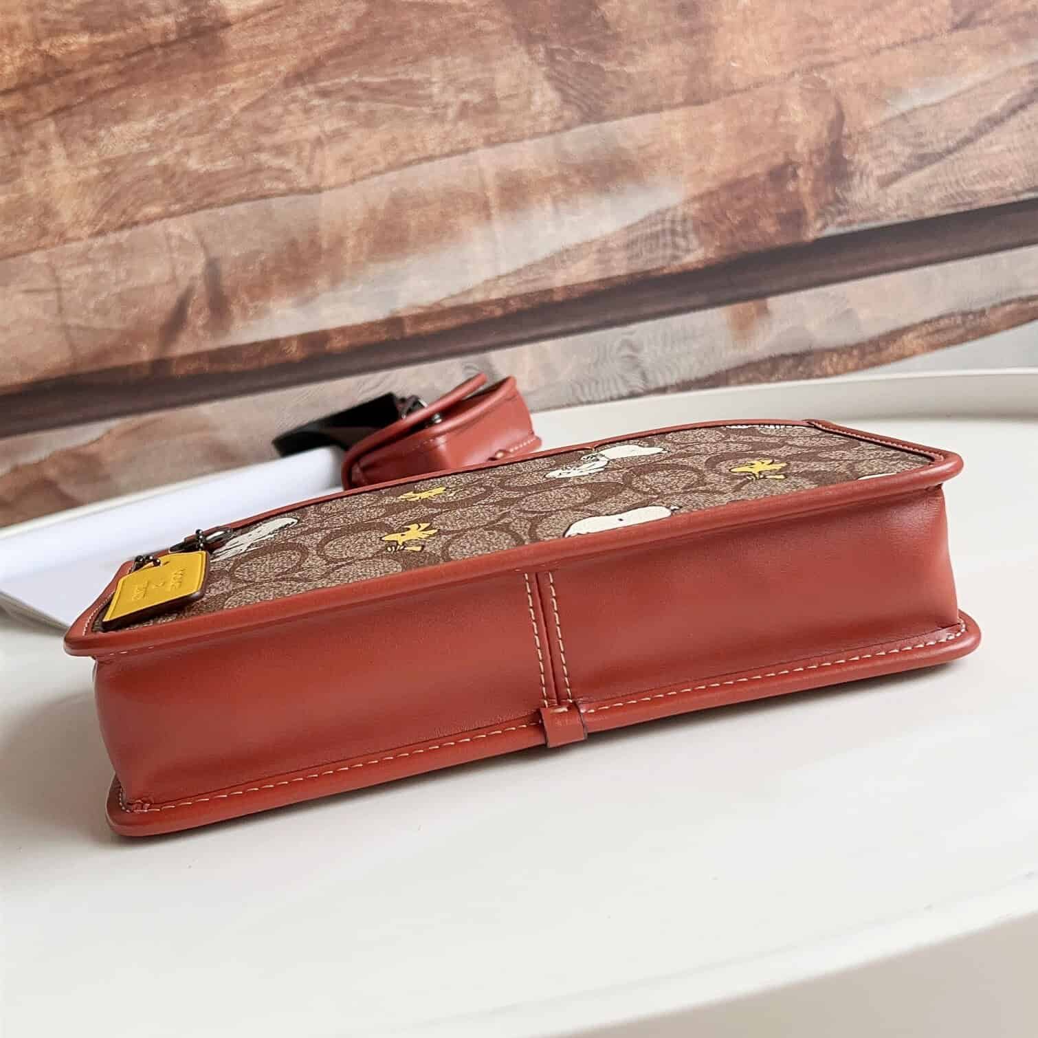 COACH Snoopy joint model classic presbyopia with leather fabric Coach Outlet color matching classic logo HERITAGE multi-functional crossbody bag