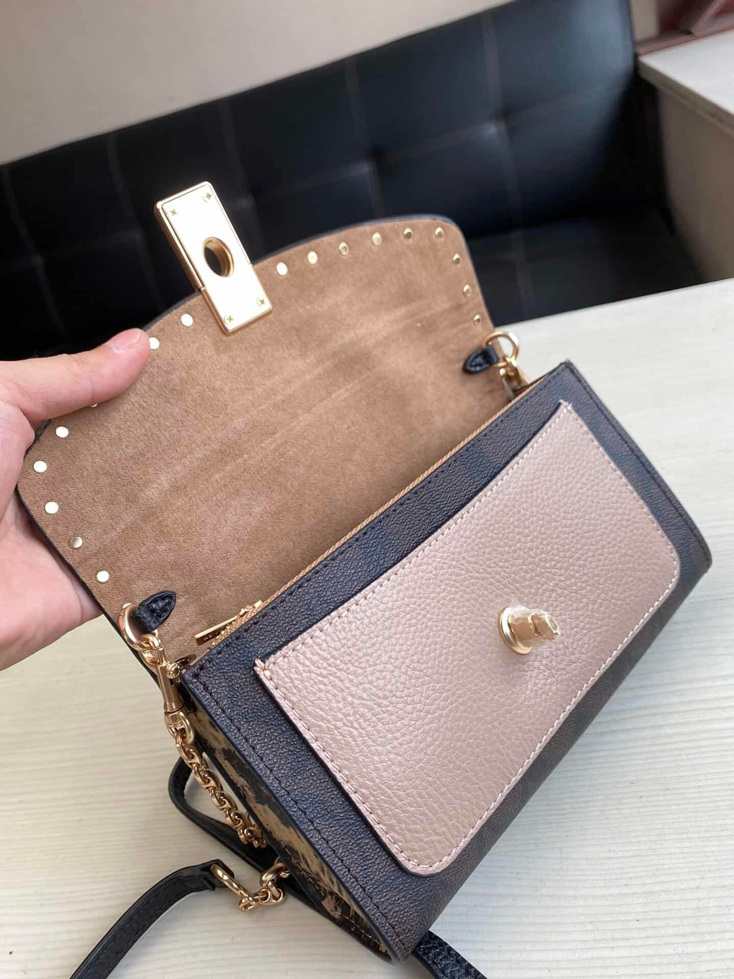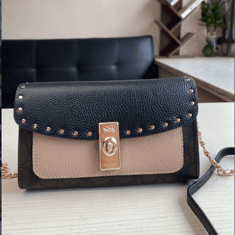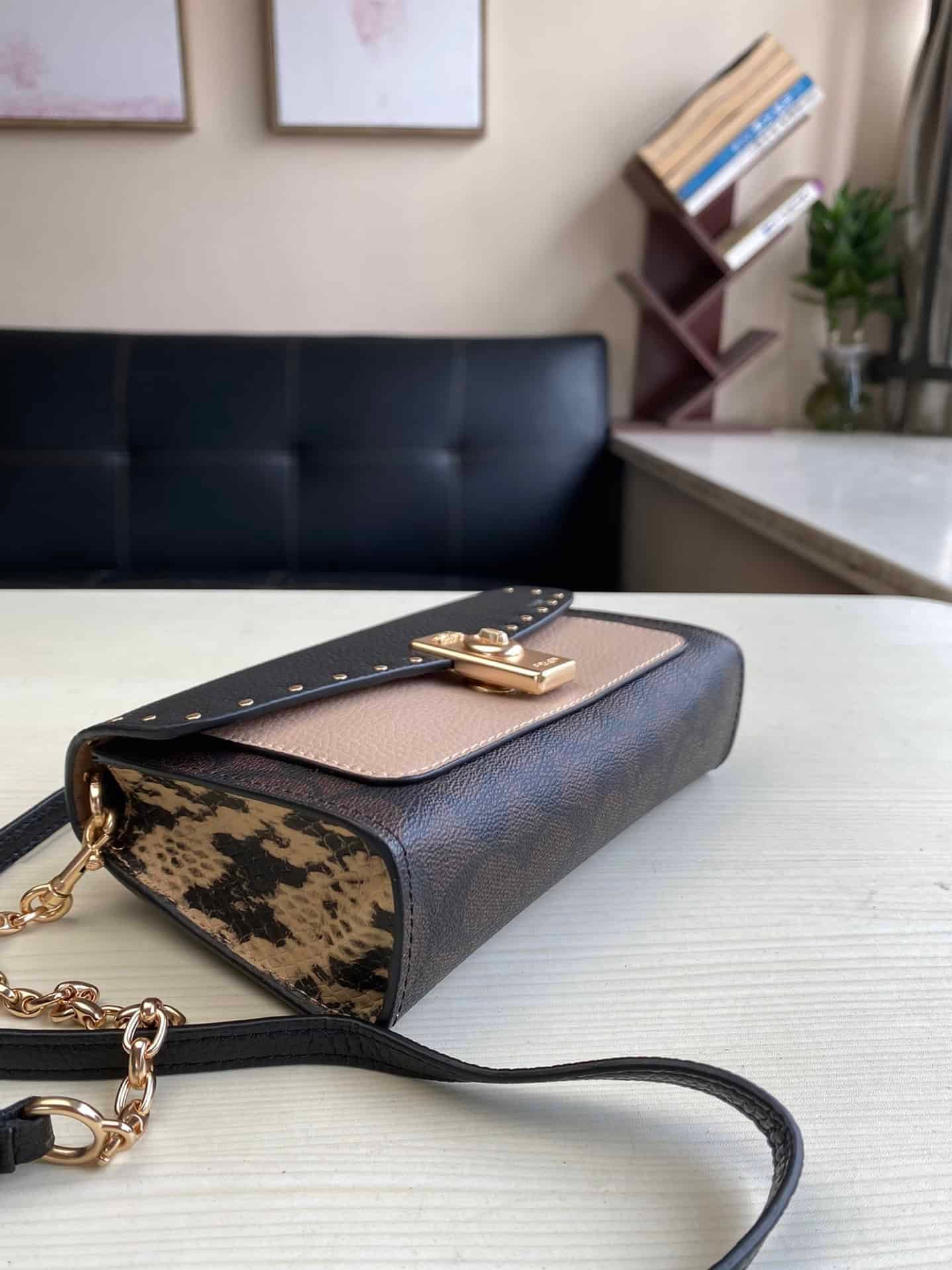 Coach 2234 women’s bag Lane shoulder color-blocked cross-body shoulder bag small rivet chain clamshell bag, classic presbyopic pattern with snake pattern, built-in multi-grid card pocket, high-end atmosphere, super cost-effective!