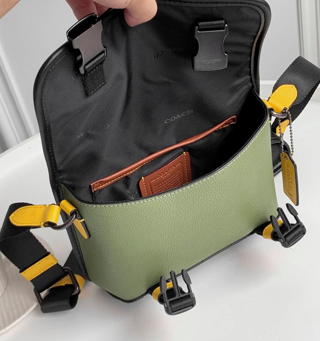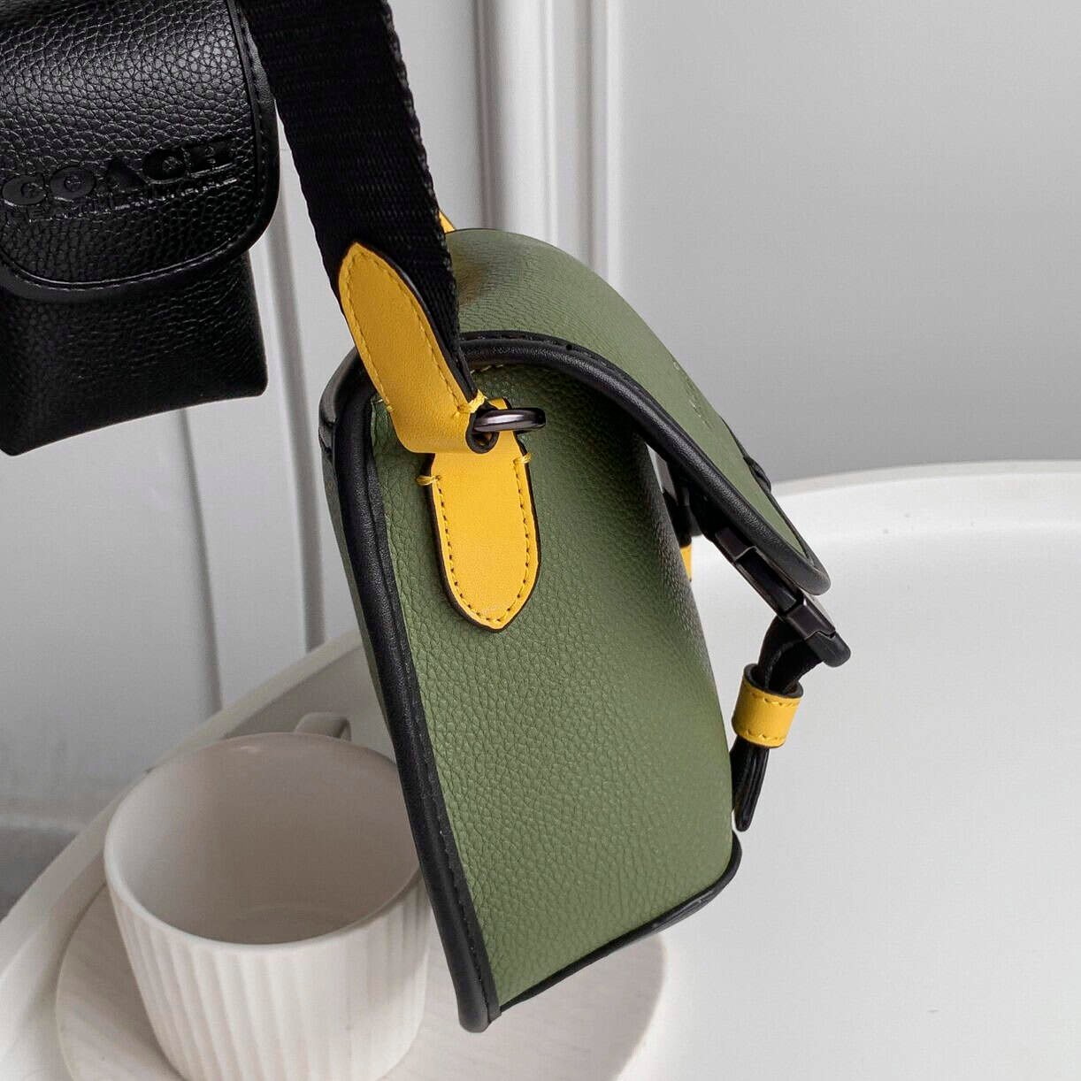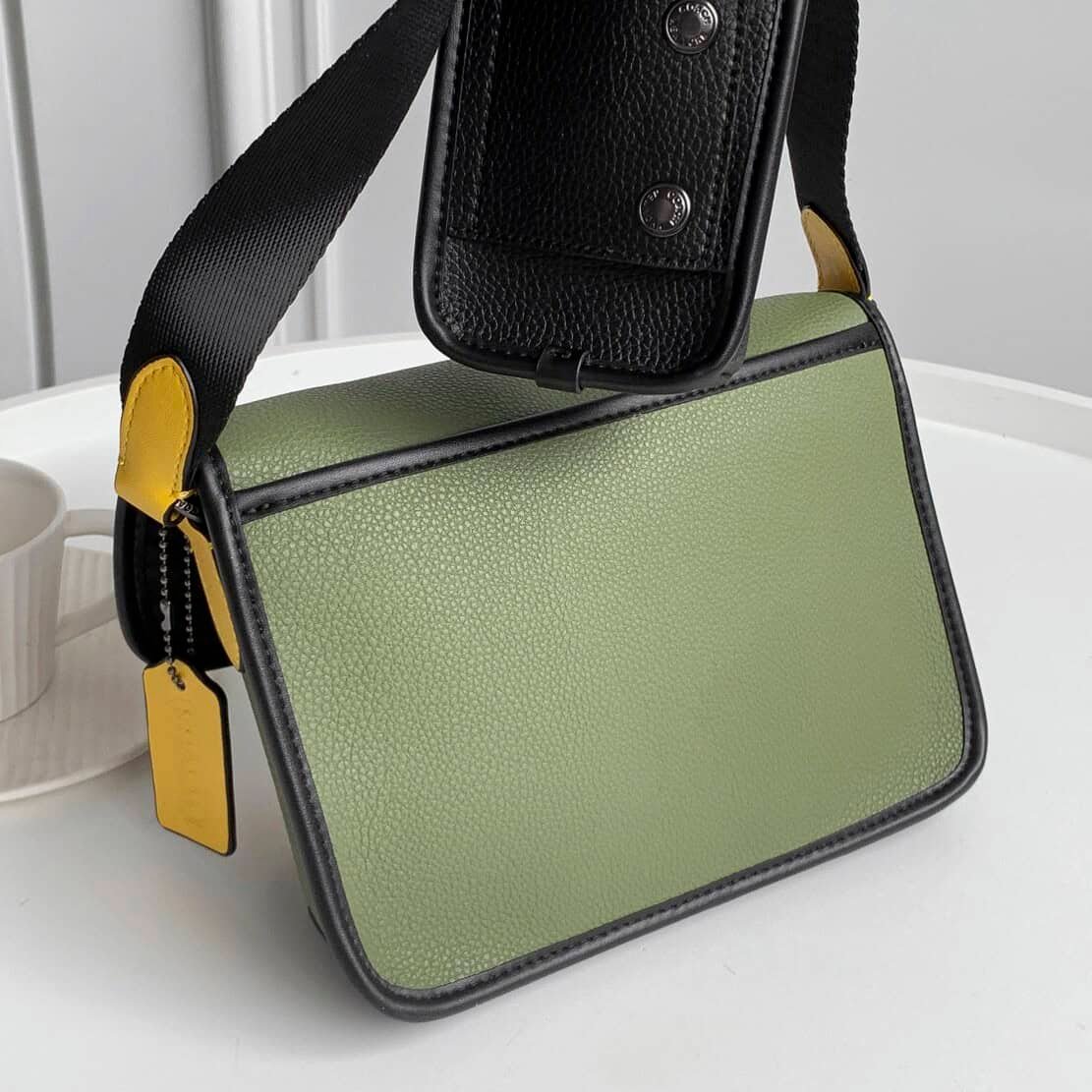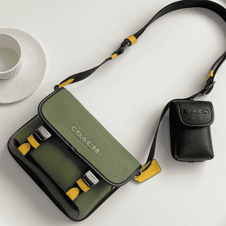 Coach 2021 new C family color matching C8113 cowhide leather LEAGUE men’s flip coin two-in-one crossbody bag pressed C canvas with refined calfskin,