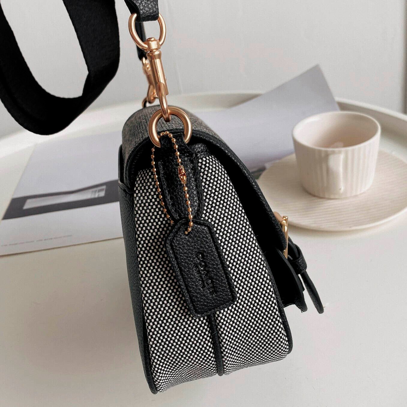 new LUCY flip-top printed buckle crossbody bag, shoulder bag, small square messenger bag🆕❤New small square messenger bag, cloth and leather. Unisex preppy style is OK for both boys and girls |