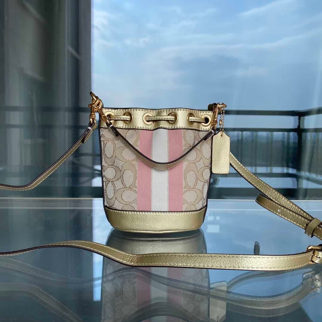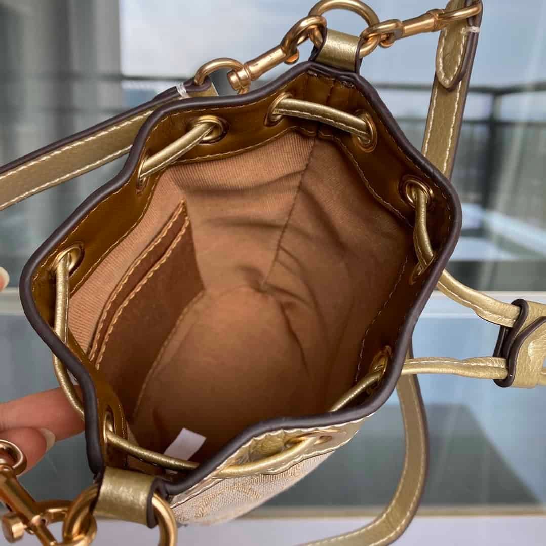 2022 new women’s bag shoulder bag mini drawstring bucket bag women’s champagne gold mini bag versatile cross-body bag,