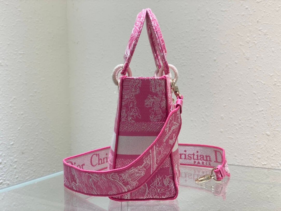 The Lady D-Lite bag combines classic elegance with the chic of the House of Dior. Embroidered with the Zodiac Jouy print all over, the “CHRISTIAN DIOR” signature on the front and the “DIOR” charm in rich light gold-finish metal add a touch of movement to the exquisite silhouette. Medium size, with a wide detachable double-sided embroidered shoulder strap, which can be carried by hand, over the shoulder or cross-body.