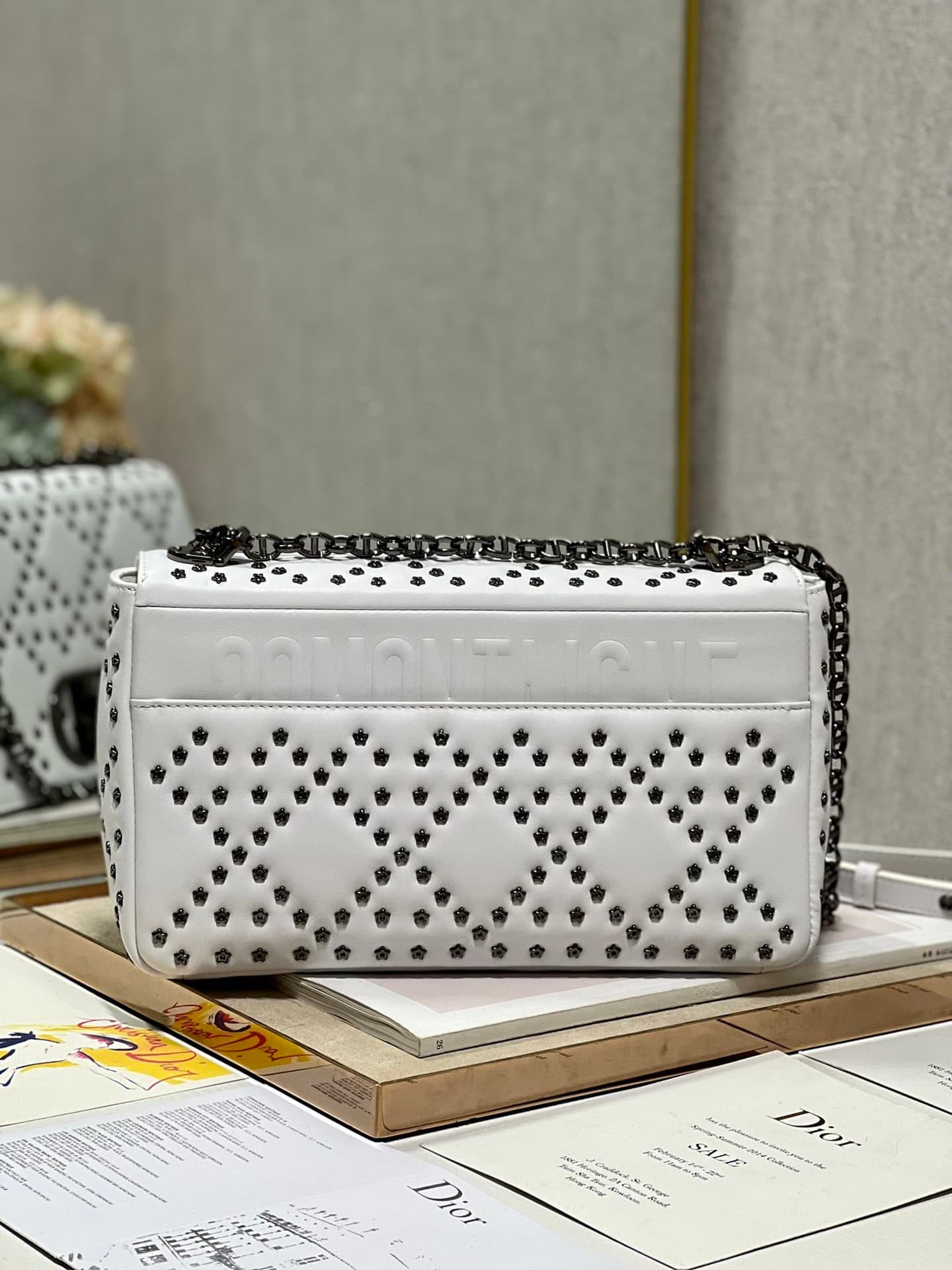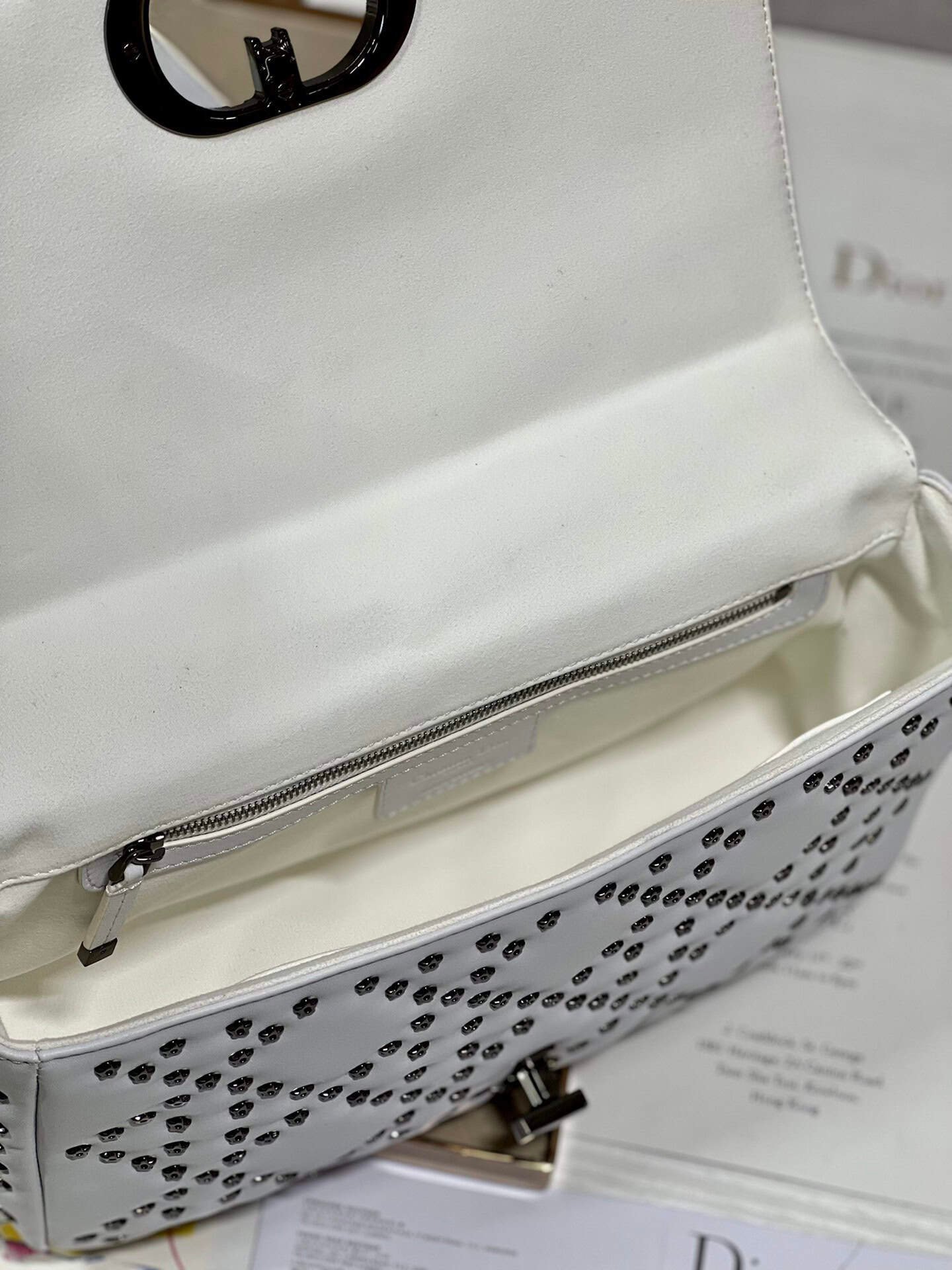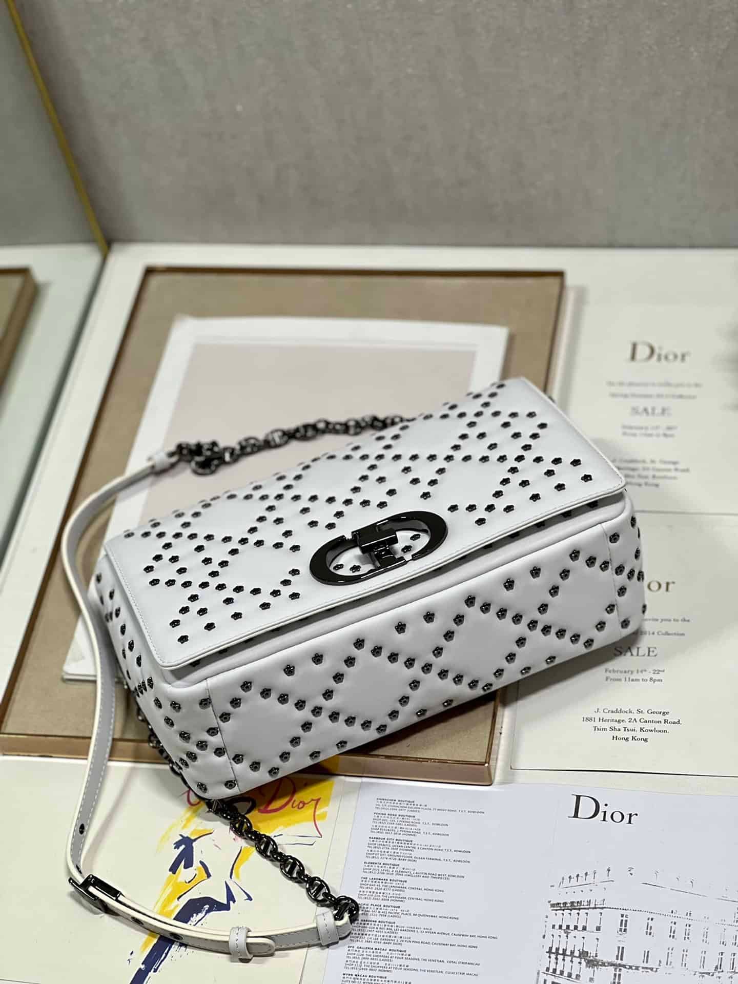 The flap is decorated with a gun-tone metal ‘CD’ buckle, and small five-pointed stars are inlaid at the intersection of diamond seams✨✨✨