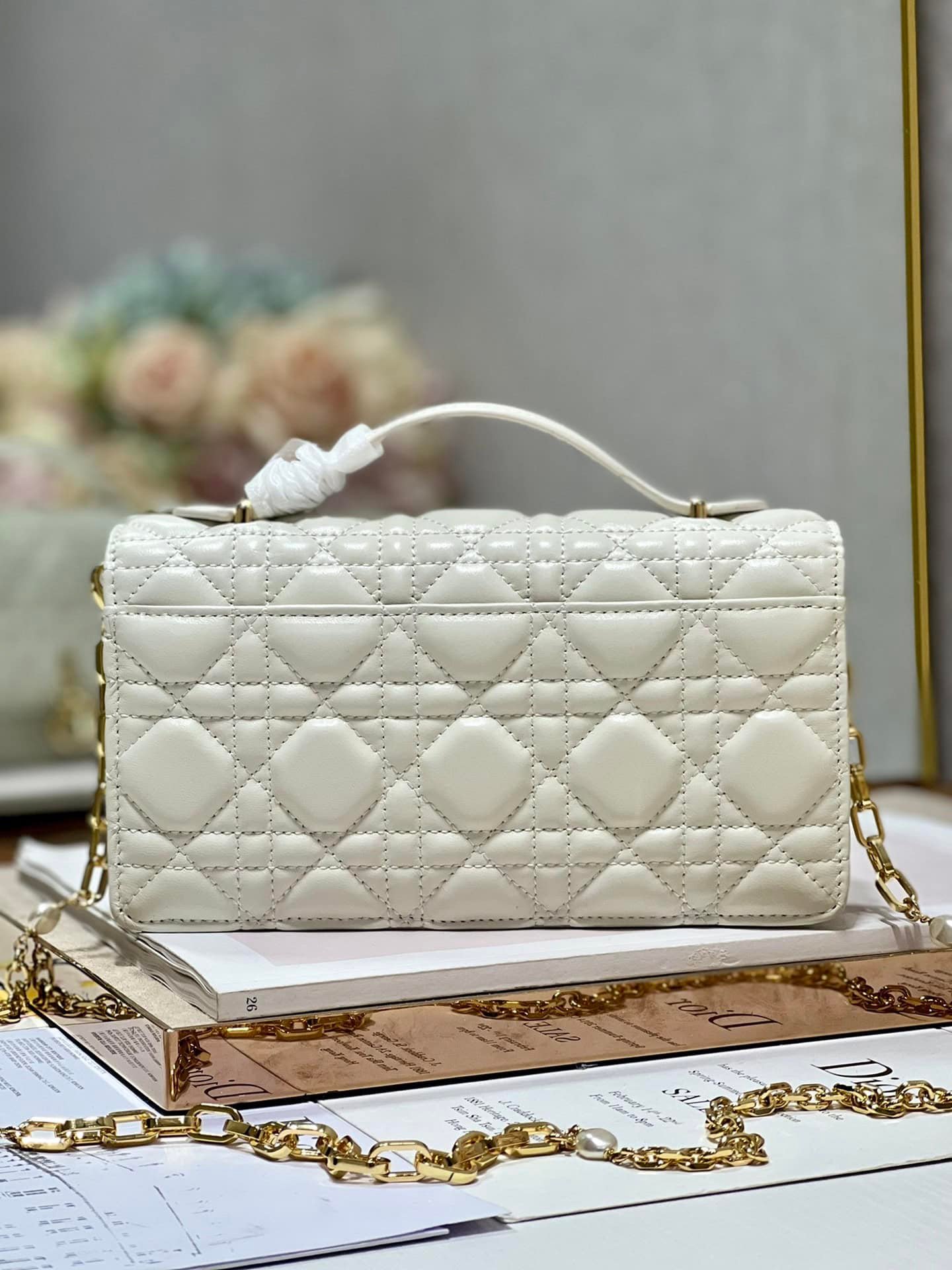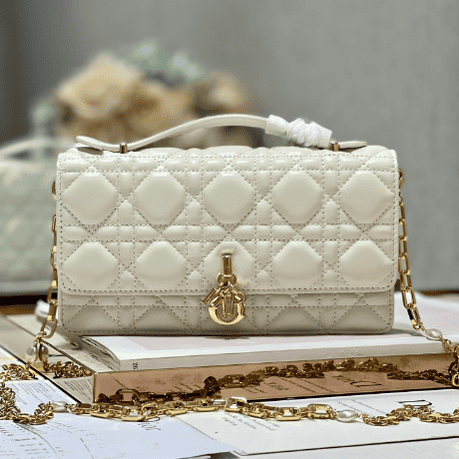 This clutch bag is a new product of this season💕The top is equipped with a handle, which is elegant and practical, enriching the Lady Dior series. Elaborately crafted in dark green calf leather with cannage pattern, the flap design is enhanced with a DIOR charm. Ideal for day and evening looks, this practical design features multiple compartments and card slots to hold all your everyday essentials. Top handle, detachable chain with beaded embellishment for added sophistication, can be carried by hand or cross-body.