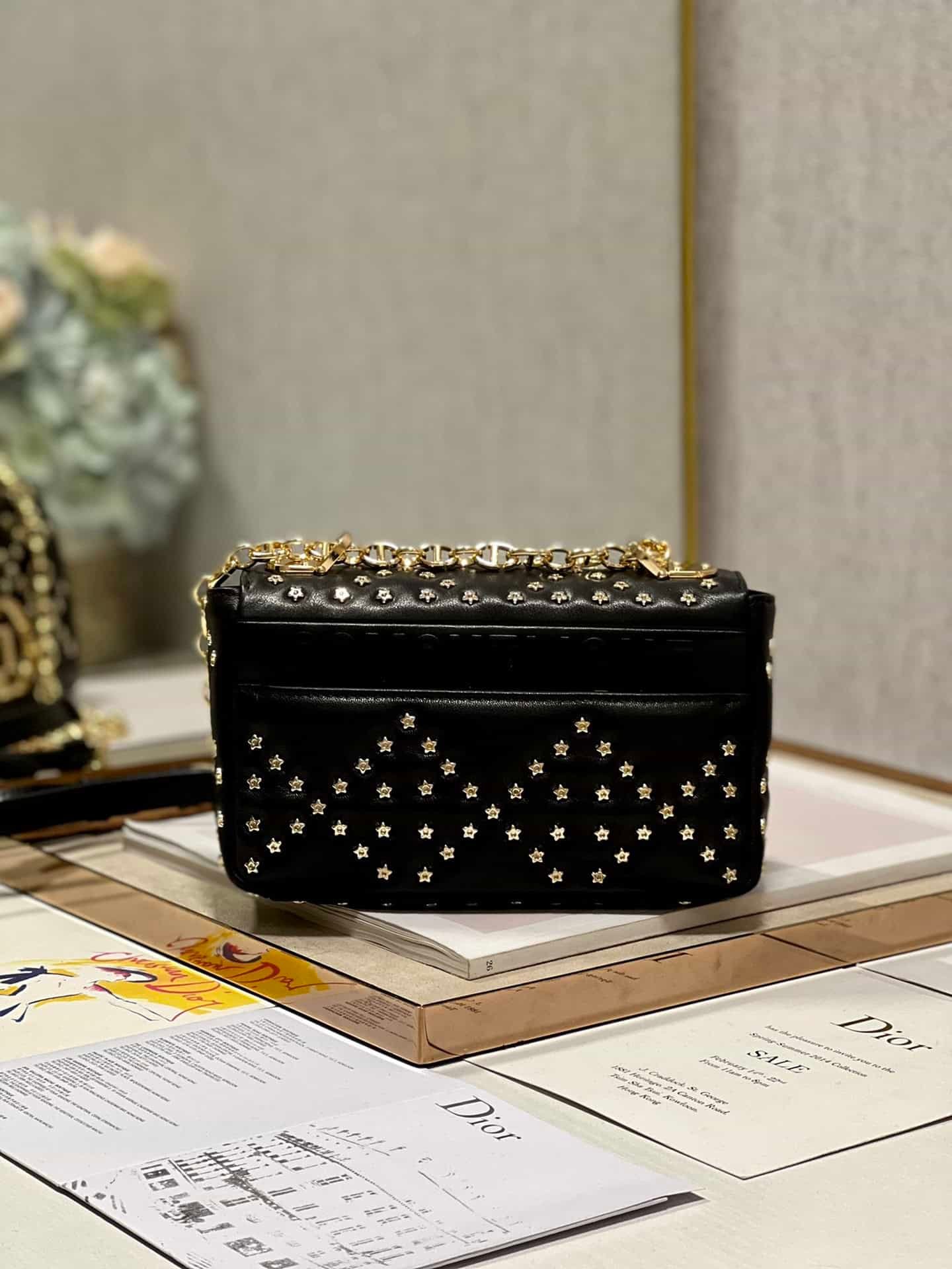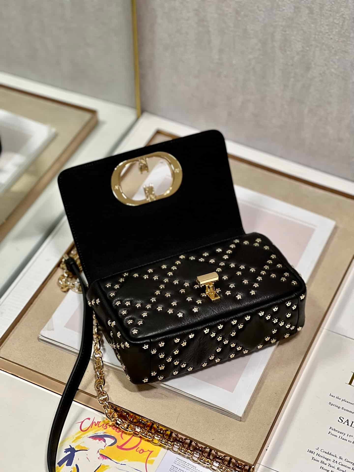 The flip cover is decorated with a golden metal ‘CD’ buckle, and small five-pointed stars are inlaid at the intersection of diamond seams✨✨✨