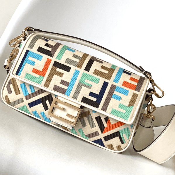 Fend•𝗯𝗮𝗴𝘂𝗲𝘁𝘁𝗲Classic medium style colorful relief pattern composed of FF embroidery