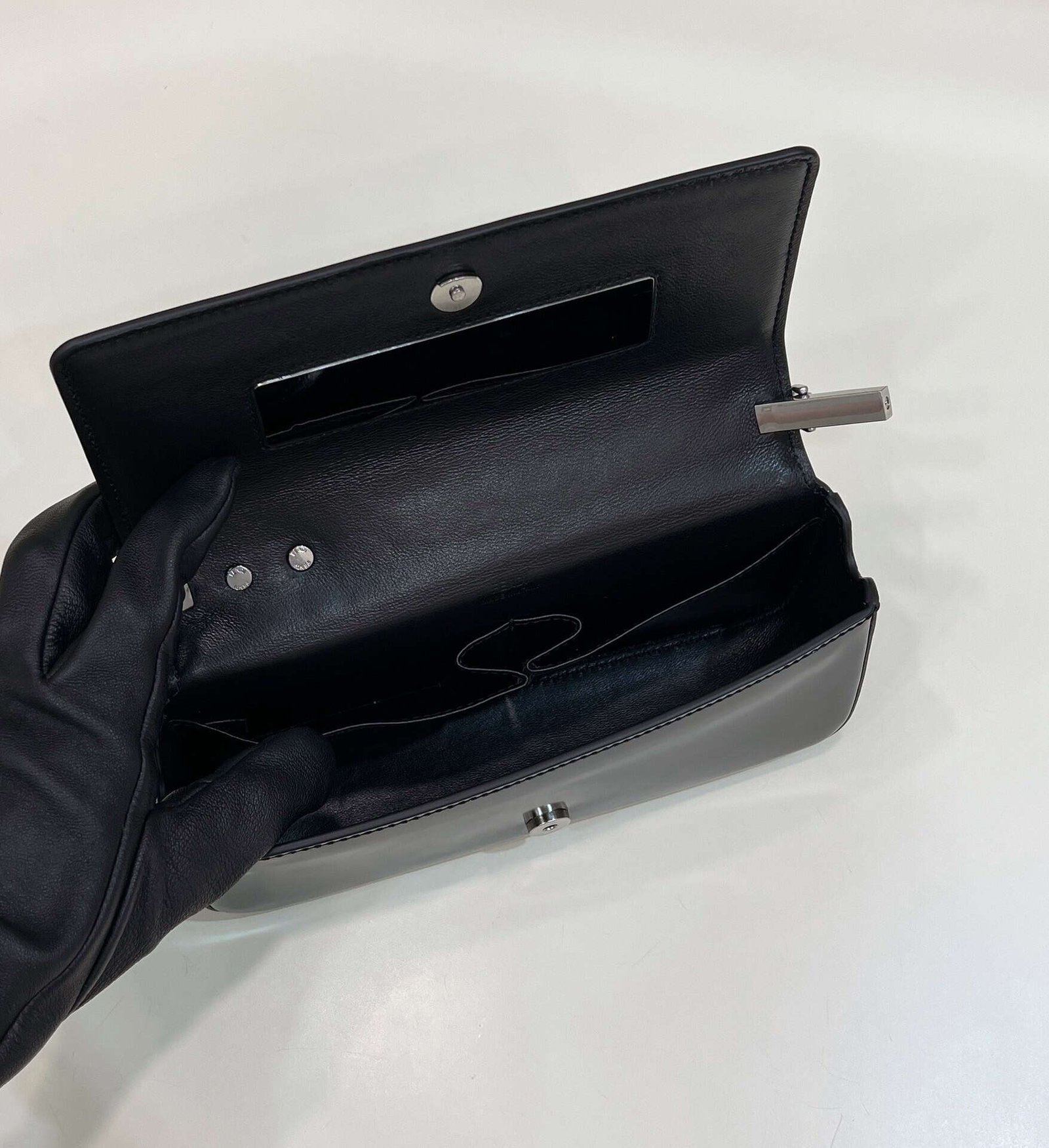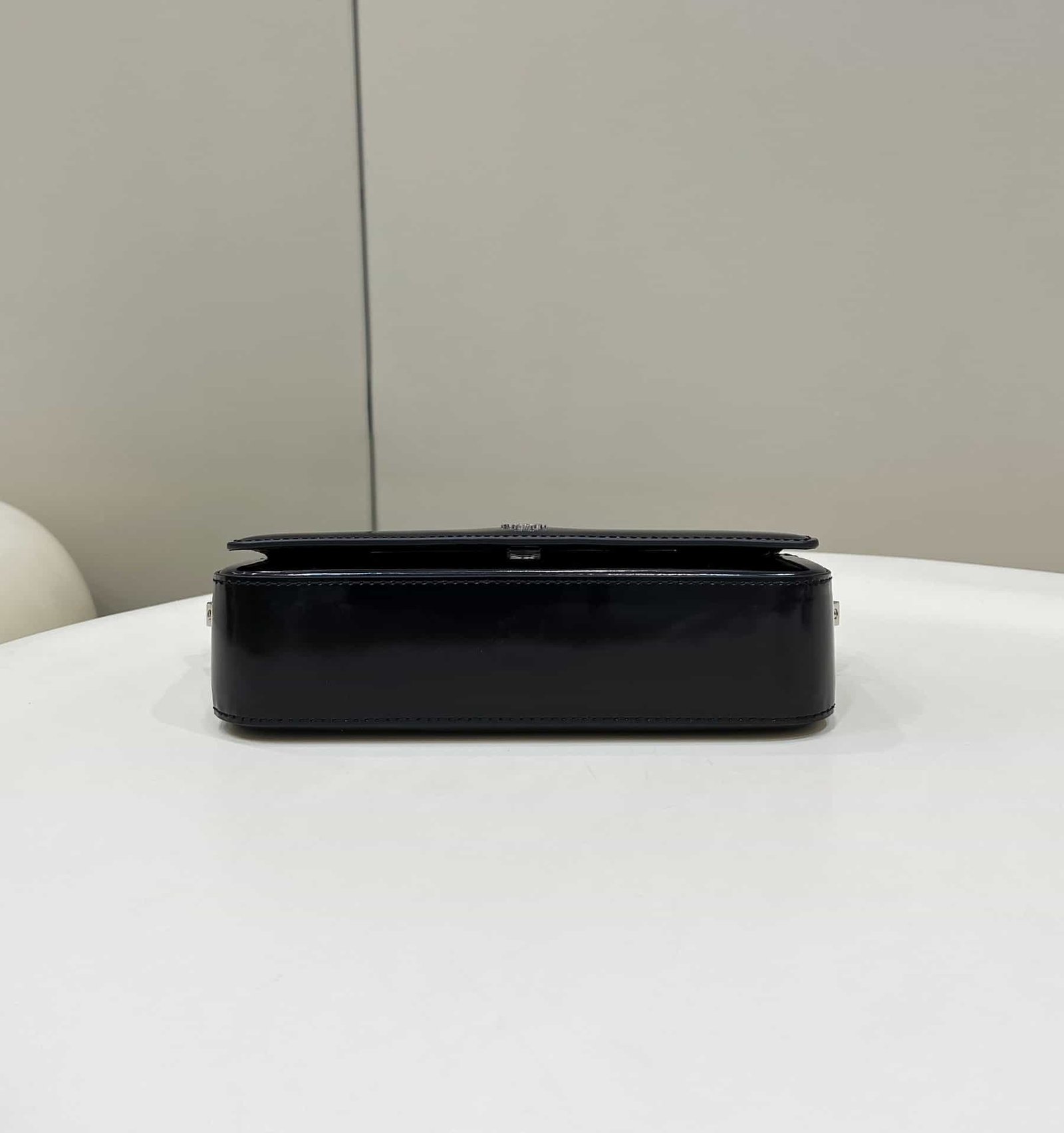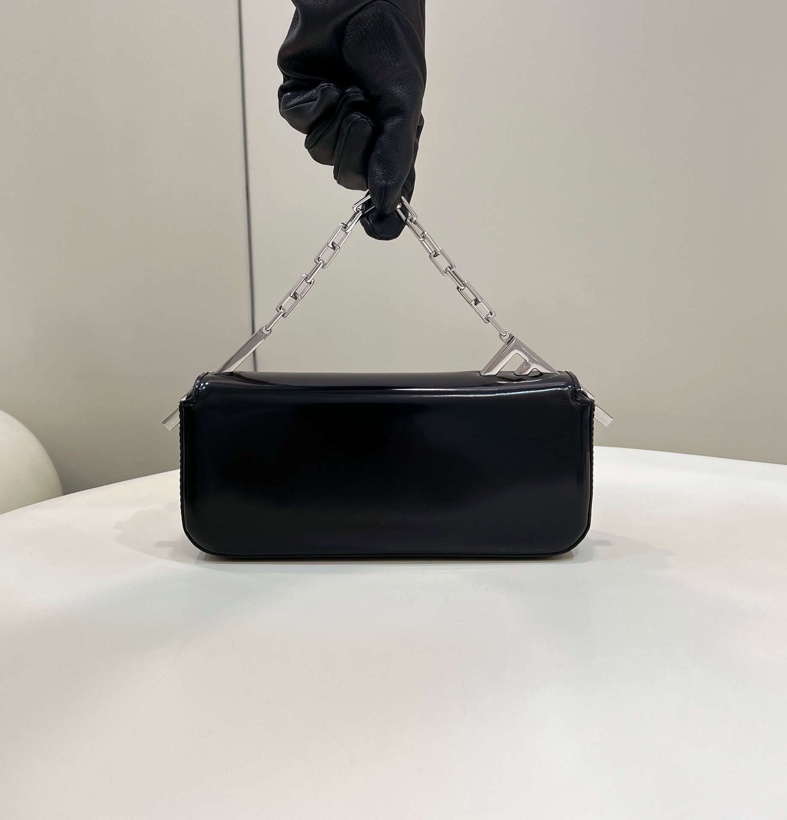 FENDI First Sight handbag in full leather with large F motif metal hardware and chain, leather interior in matching tones, with handbag mirror and 2 pockets, with antique silver-tone hardware, short chain handle, can be hand held or portable