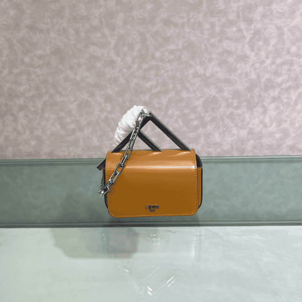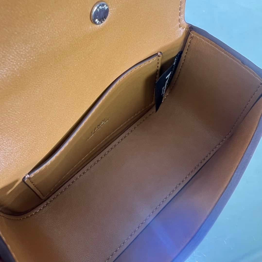 First Sight handbag is made entirely of leather, decorated with large F-pattern metal accessories and chains, matching leather lining, equipped with inner pockets for easy use, with retro silver metal parts, short chain handbags, super versatile~