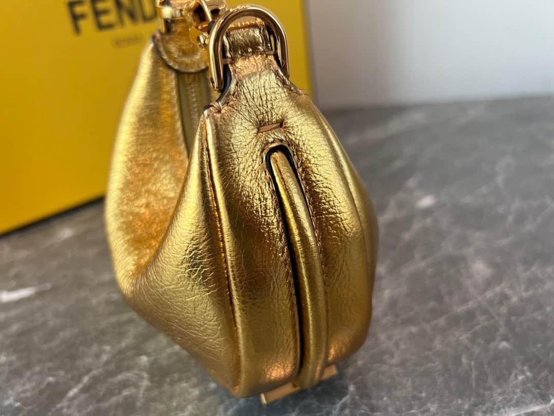 FEND1praphy underarm bag, featuring a crescent moon shape, with a large classic metal logo [FEND1] decorated on the bottom of the bag. The outline of the bag is very suitable for the body line. It is full of fashion sense when carried under the armpit, simply It’s a walking lawn grower! mini