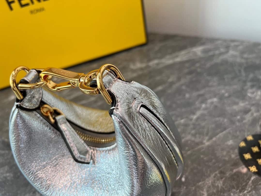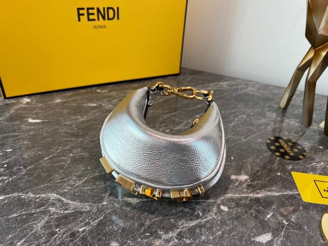 FEND1praphy underarm bag, featuring a crescent moon shape, with a large classic metal logo [FEND1] decorated on the bottom of the bag. The outline of the bag is very suitable for the body line. It is full of fashion sense when carried under the armpit, simply It’s a walking lawn grower! mini