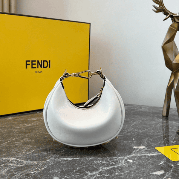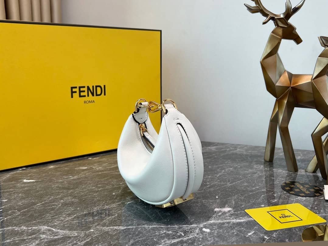 FEND1praphy underarm bag, featuring a crescent moon shape, with a large classic metal logo [FEND1] decorated on the bottom of the bag. The outline of the bag is very suitable for the body line. It is full of fashion sense when carried under the armpit, simply It’s a walking lawn grower! mini