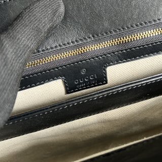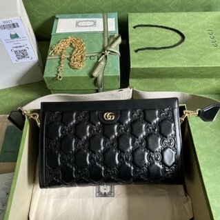 GG matelassĂ© leather shoulder bag continues to stand out in a unique way. With an ultra-soft finish, the iconic material is once again reimagined as part of the Gucci Love Parade, with a textured geometric pattern. The design presents a contemporary approach to the ’90s logo trend that appeared in House’s latest collection. Here, it comes in a minimalist shade of black. Black GG matelassĂ© leather with double G gold hardware.