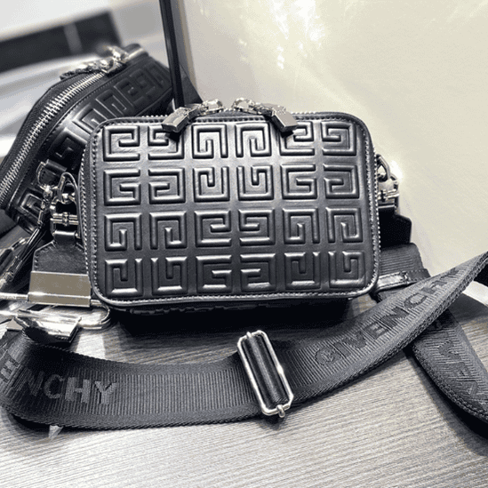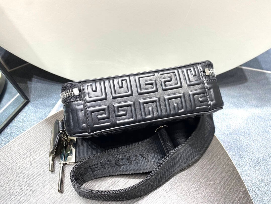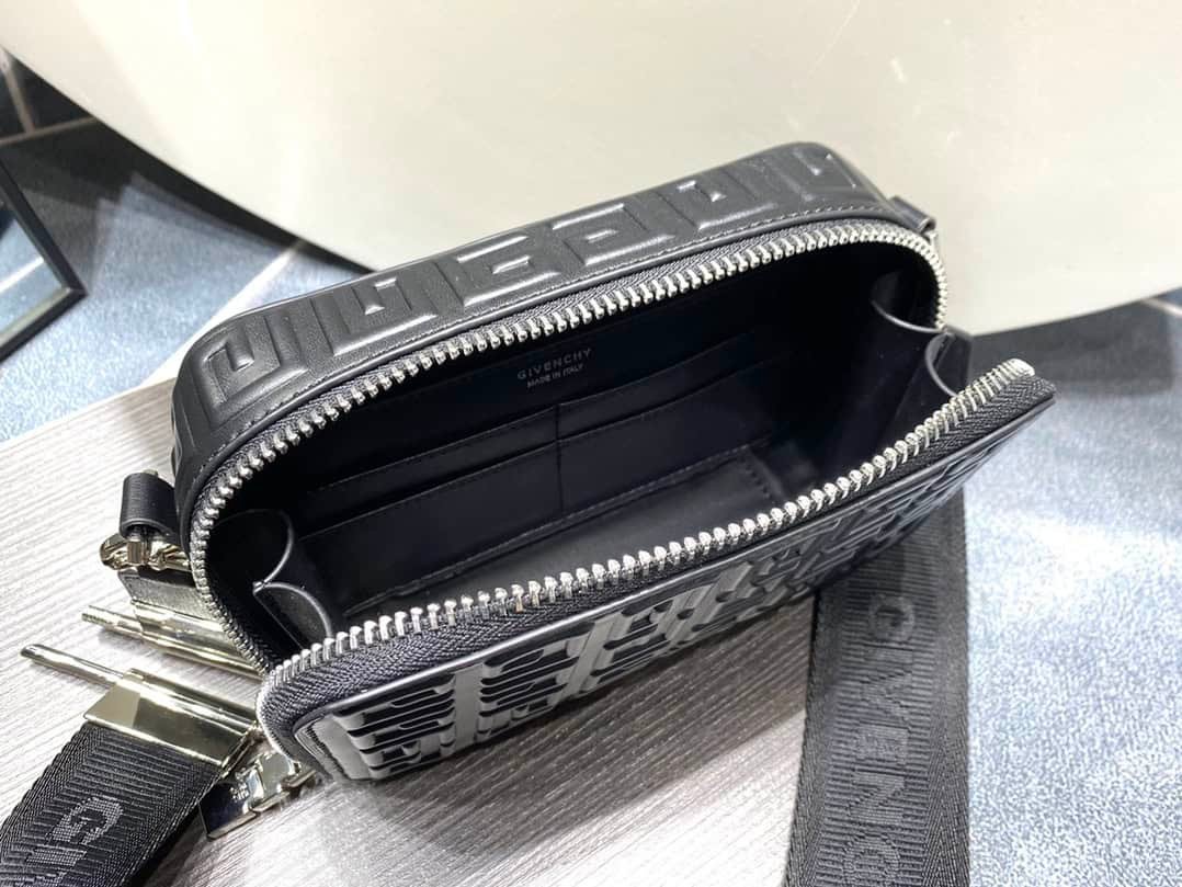GIVENCHY 4G Logo Antigona U camera bag cowhide pressed three-dimensional 4G pattern, zipper opening and closing, 4G zipper puller, Givenchy Logo adjustable jacquard canvas shoulder strap, with U-shaped metal accessories. There is a flat pocket on the back of the bag; there is a flat pocket on the inside with four card slots.