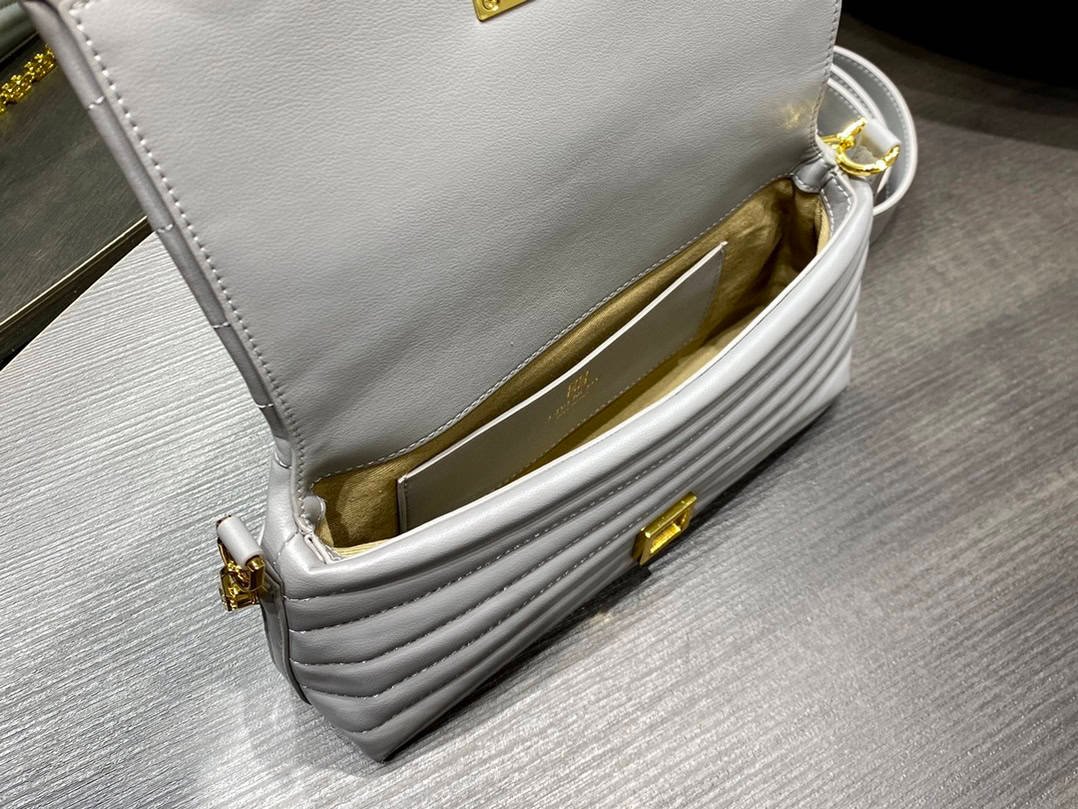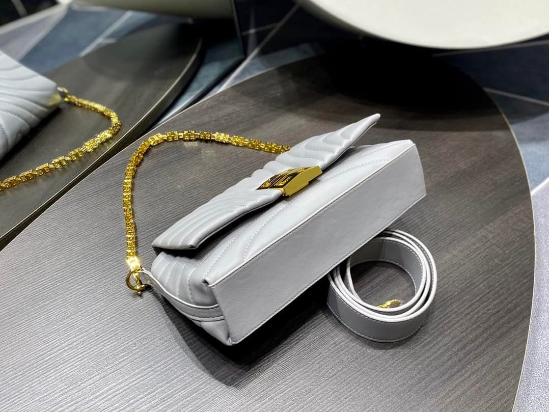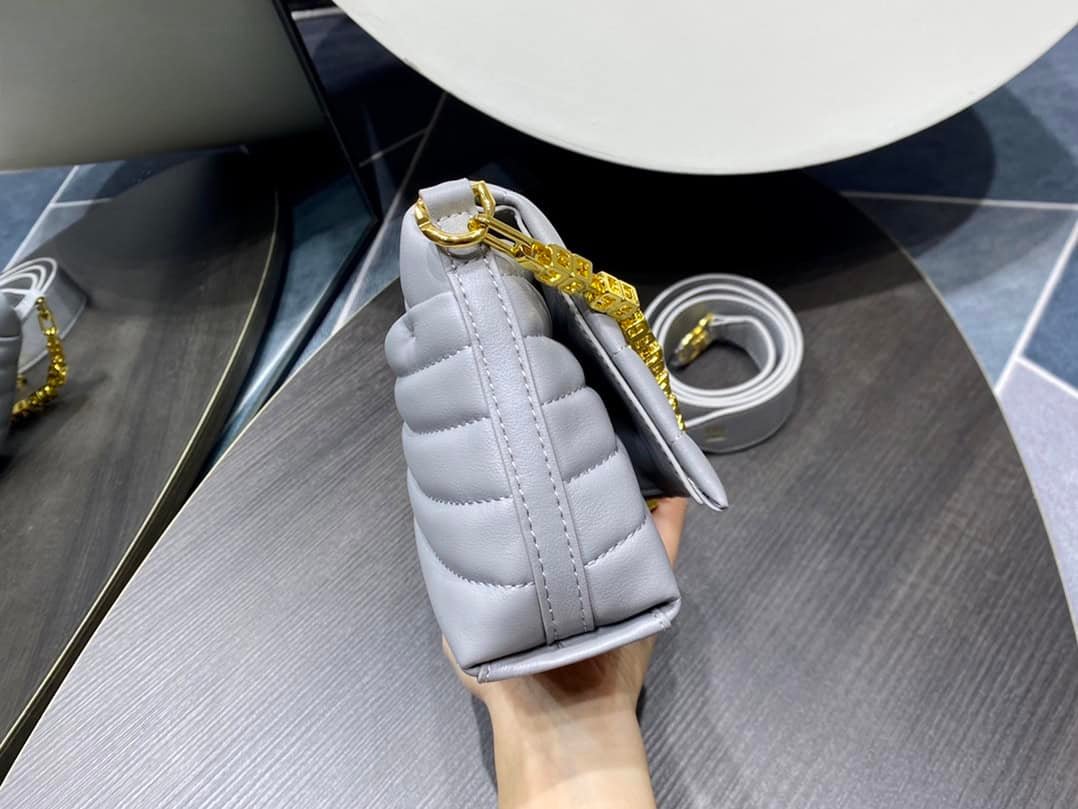 Givenchy 4G Soft handbag small. The front of the bag is a metal magnetic buckle with the brand’s 4G logo and a flip closure. There is a flat patch pocket on the back of the bag, and there is also a flat patch pocket on the inside of the bag. The G-shaped chain can be carried on one shoulder or by hand, and the detachable and non-adjustable leather shoulder strap provides a cross-body carrying method.