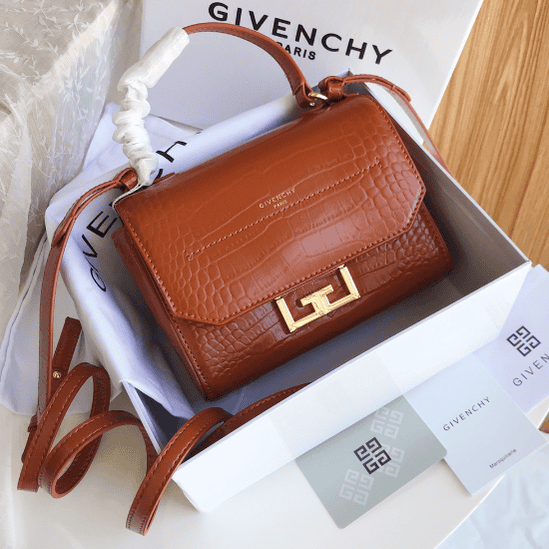 GIVENCHY EDEN BAG mini crocodile pattern . The design is inspired by the story of Adam and Eve in the Garden of Eden, hence the name “EDEN BAG”. Made of cowhide with crocodile pattern, it has a flip-top magnetic buckle design, hanging belts on both sides, and a detachable leather shoulder strap, which can be carried by hand on one shoulder and cross-body.