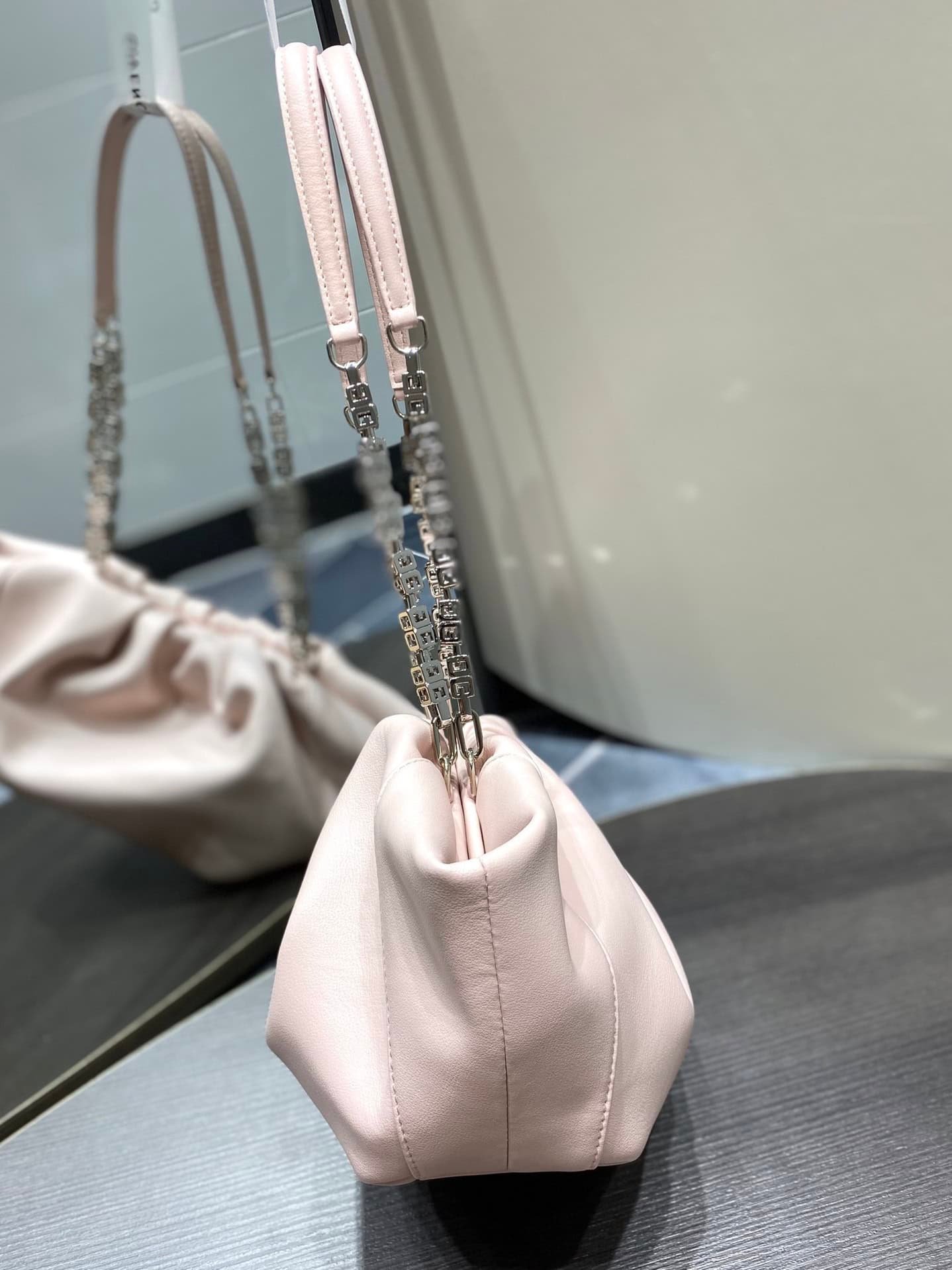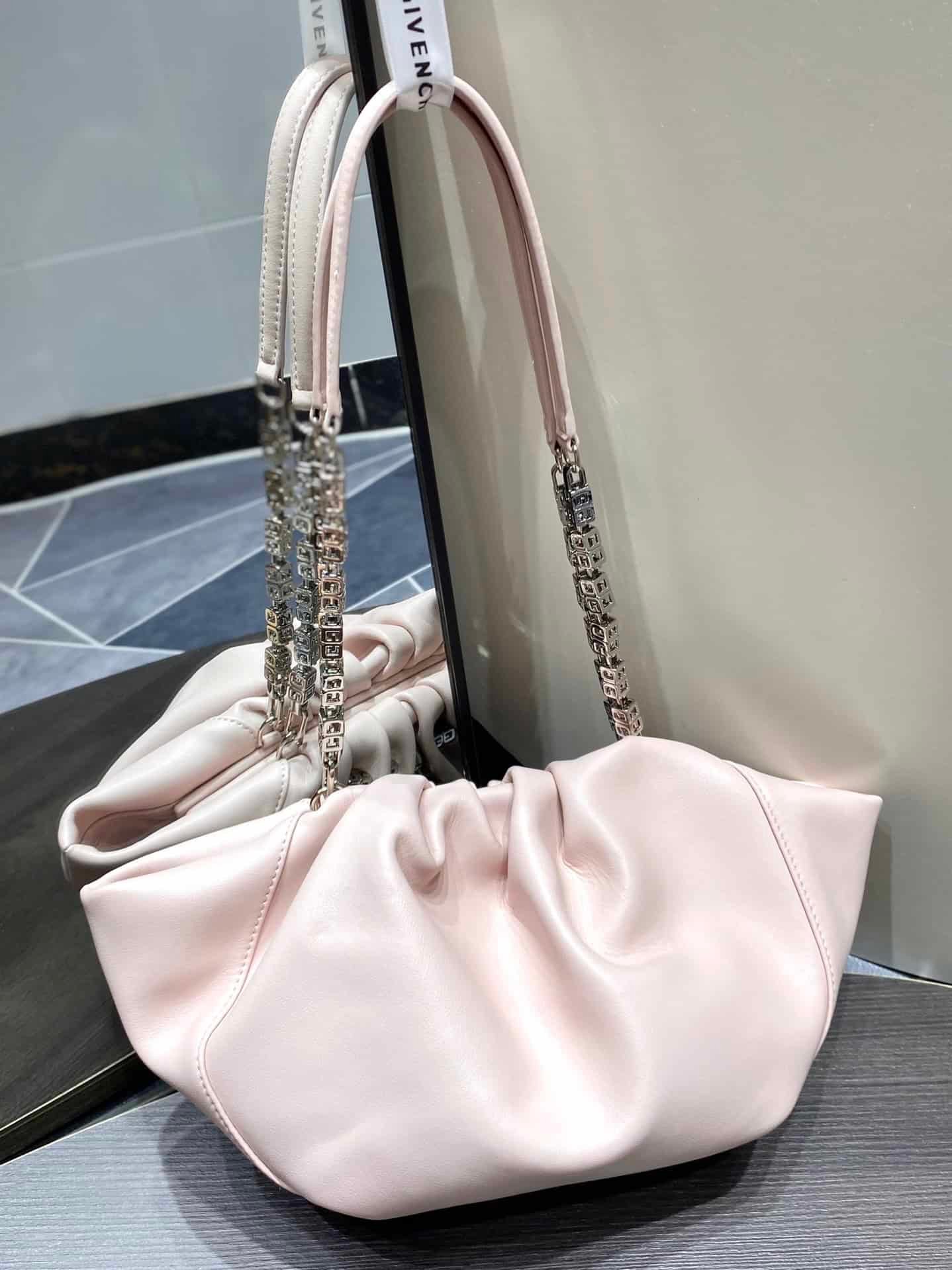 GIVENCHY Kenny Bag small size This bag was specially designed by Givenchy for Kendall Jenner to attend the Met Gala, so it was named Kenny Bag. The shape is a bit like a cloud bag ☁️ with the added logo G-shaped chain ⛓️ and logo lock 🔒. It is both strong and soft, with a cow outside and a sheep inside, and a soft touch. Although it is a small size, the capacity is definitely enough. The magnetic buckle opens and closes, and it is very tight, so you don’t have to worry about safety issues.