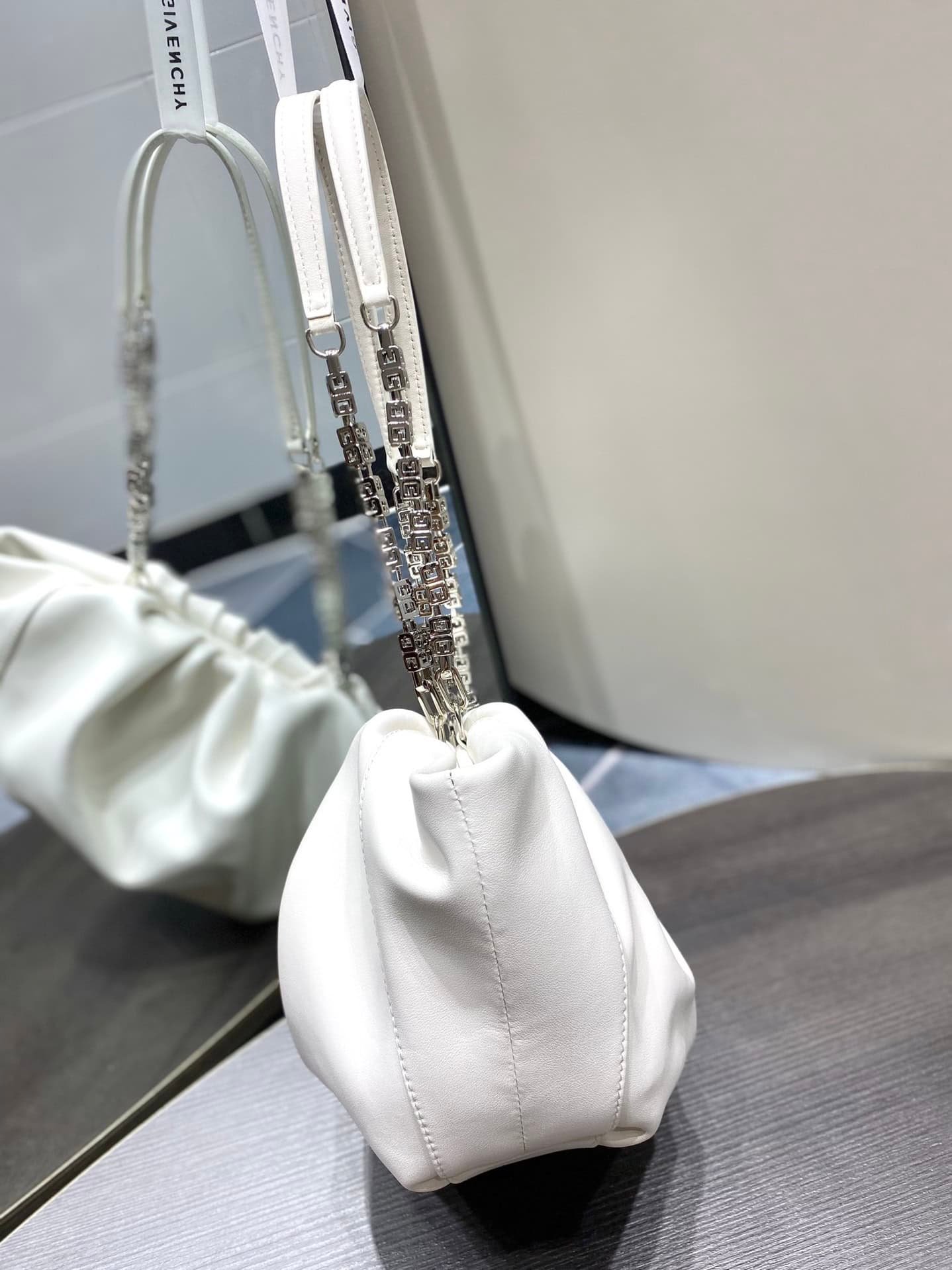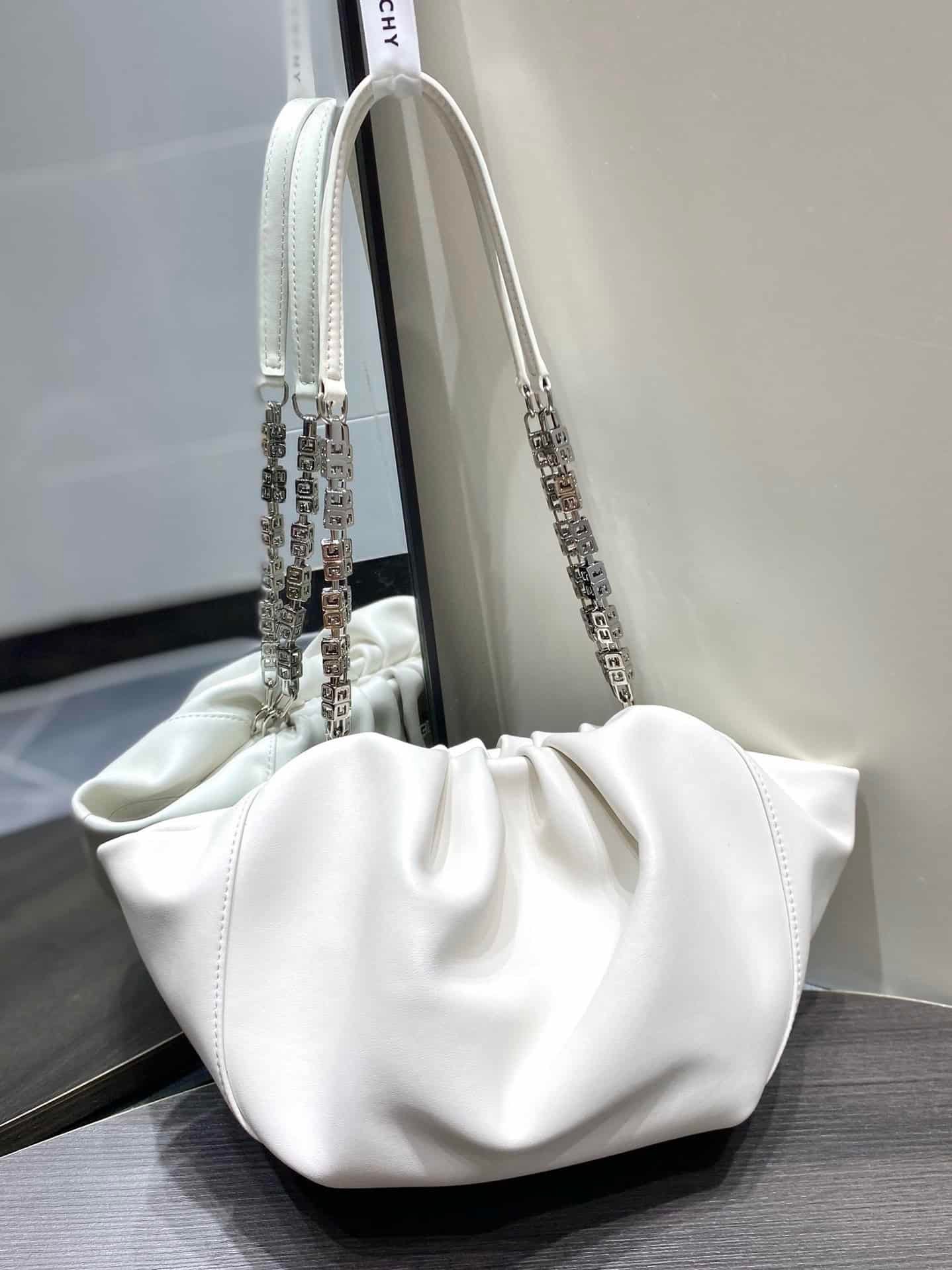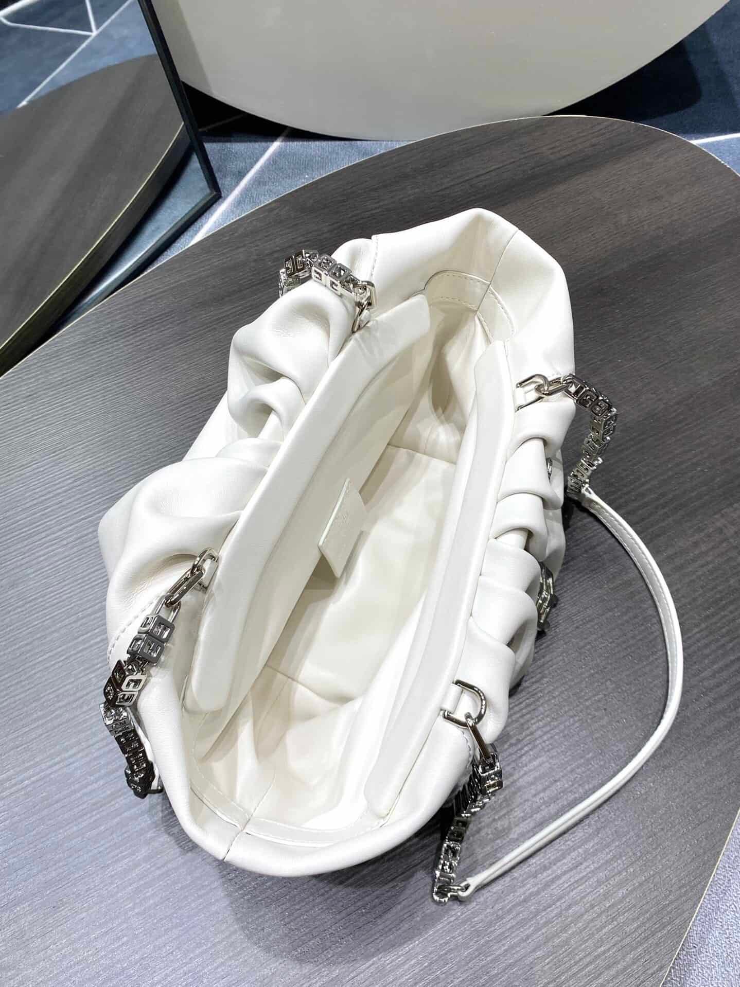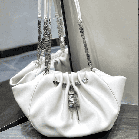 GIVENCHY Kenny Bag small size This bag was specially designed by Givenchy for Kendall Jenner to attend the Met Gala, so it was named Kenny Bag. The shape is a bit like a cloud bag ☁️ with the added logo G-shaped chain ⛓️ and logo lock 🔒. It is both strong and soft, with a cow outside and a sheep inside, and a soft touch. Although it is a small size, the capacity is definitely enough. The magnetic buckle opens and closes, and it is very tight, so you don’t have to worry about safety issues.