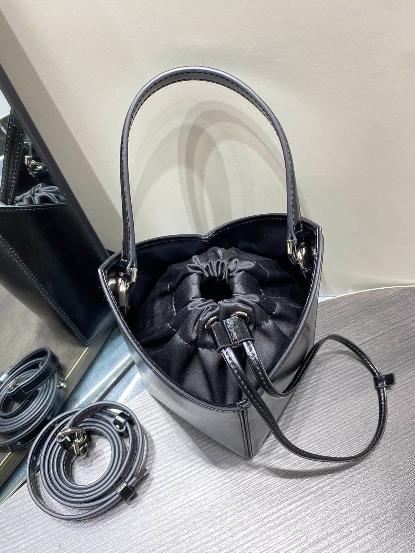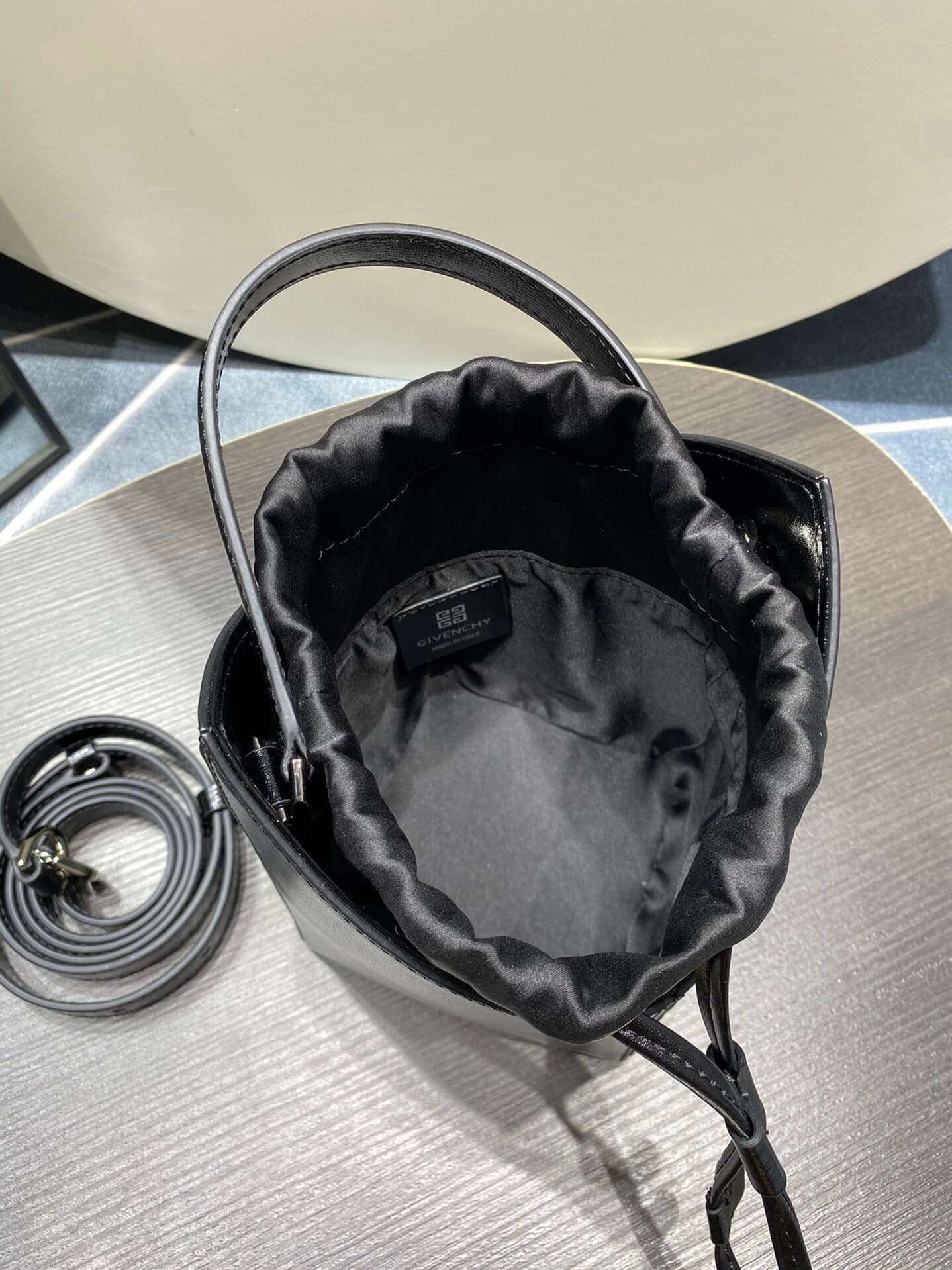 GIVENCHY Mini Cut Out Bucket Bag The Cut Out series has another new style🥰This time it is also super personalized! Different from other brands of bucket bags, this bag has a geometrically symmetrical design, which makes it very stylish and impressive at first glance. The entire bag is made of cowhide, with a satin inner pocket and drawstring closure. In addition to a detachable short hand strap, there is also a detachable and adjustable long shoulder strap. It can meet your different needs such as hand carrying, shoulder carrying and cross-body carrying.