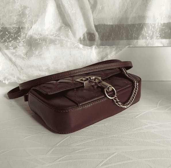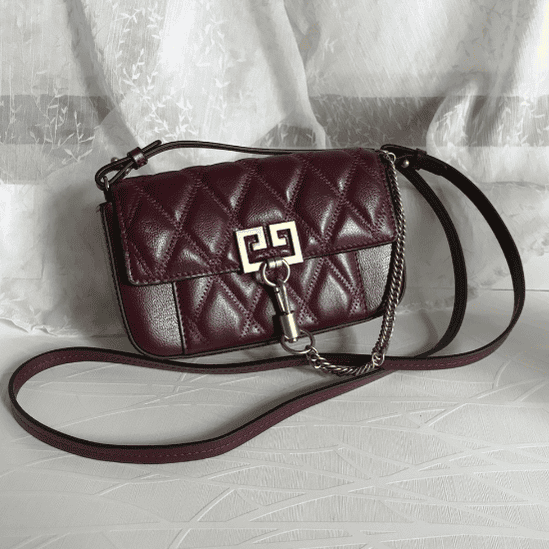 GIVENCHY GV POCKET diamond-shaped quilted mini crossbody bag. The front of the bag is decorated with retro double G metal and short chain. It has a flap suction buckle closure, a flat patch pocket on the back and a flat pocket on the inside. Has flat pockets. Equipped with a detachable full leather long shoulder strap, the short chain can be converted into a hand strap, and can be worn on one shoulder or crossbody. It is a retro and versatile style.