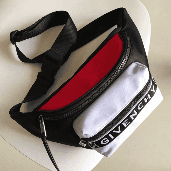 Givenchy waist bag/chest bag small made of nylon cloth. The main structure of the bag is a zippered main compartment and a small zippered pocket on the front. Black leather zipper puller, black canvas adjustable shoulder strap, can be used as a waist bag or shoulder bag, suitable for men and women.